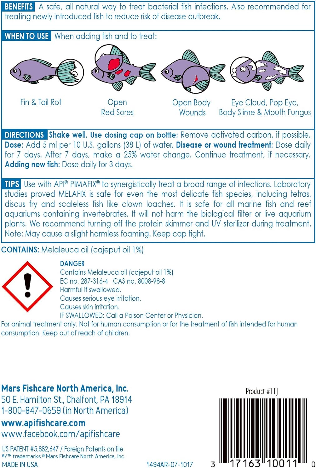 - Contains one (1) API MELAFIX Freshwater Fish Bacterial Infection Remedy 16-Ounce Bottle