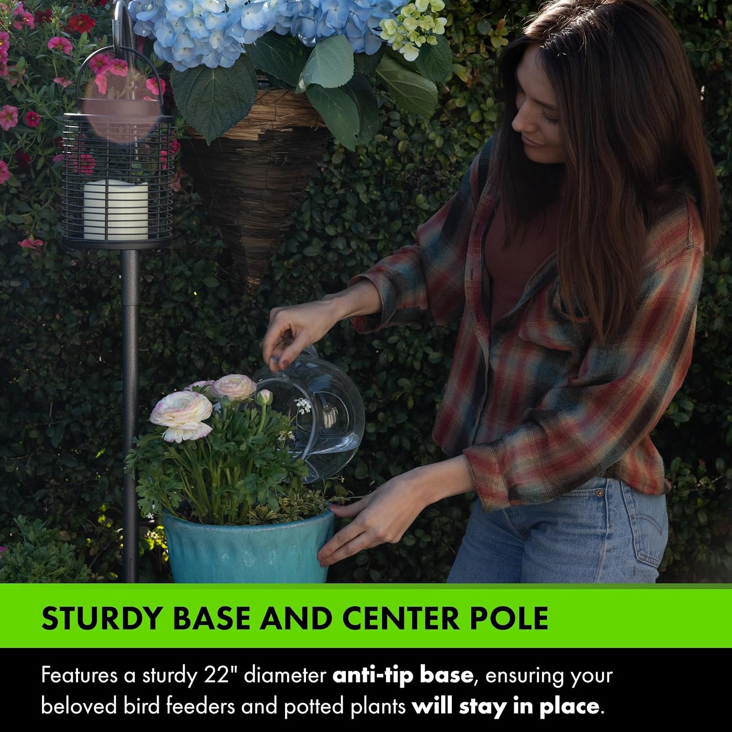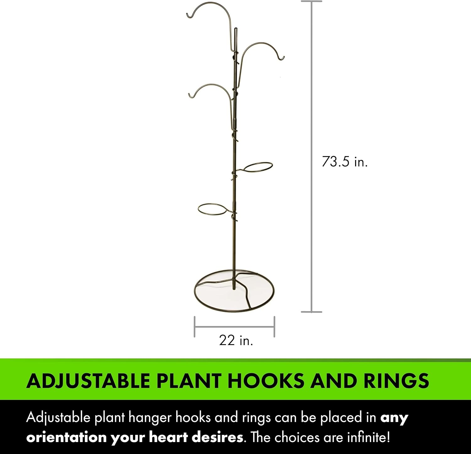 - Adjustable & Safe Stand: Sturdy base and center pole ensure that your plants and bird feeders stay in place; plant hangers and rings can be adjusted