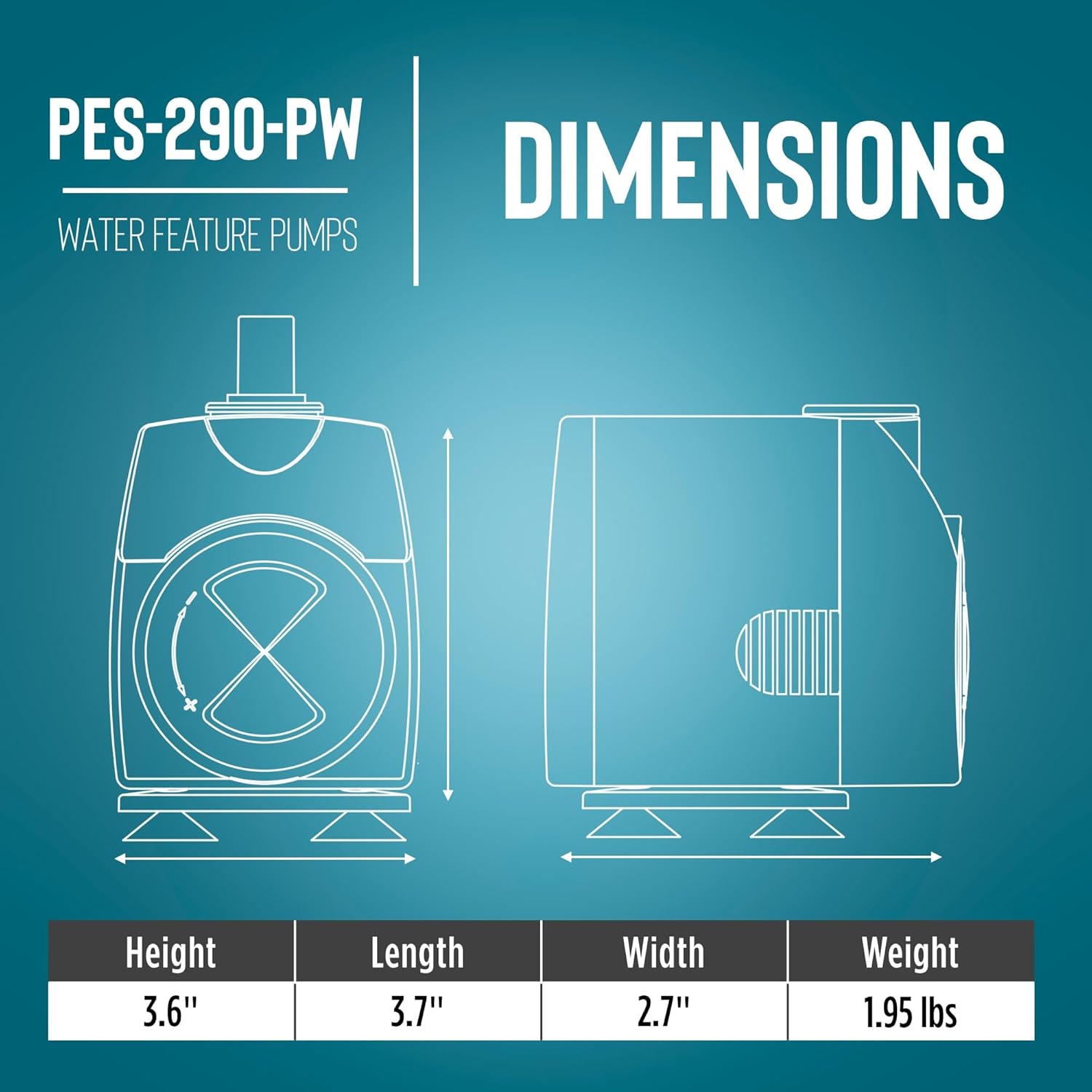 - APPLICATIONS: designed for water fountains and small ponds up to 300 gallons, hydroponics and other water transfer applications