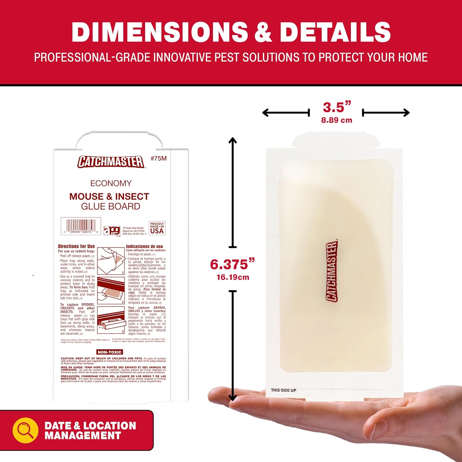 Catchmaster Mouse and Insect Glue Boards, 75-Pack Mouse Traps Indoor for Home, Sticky Pest Control Adhesive for Catching Bugs, Rats & Rodents, Bulk Glue Traps