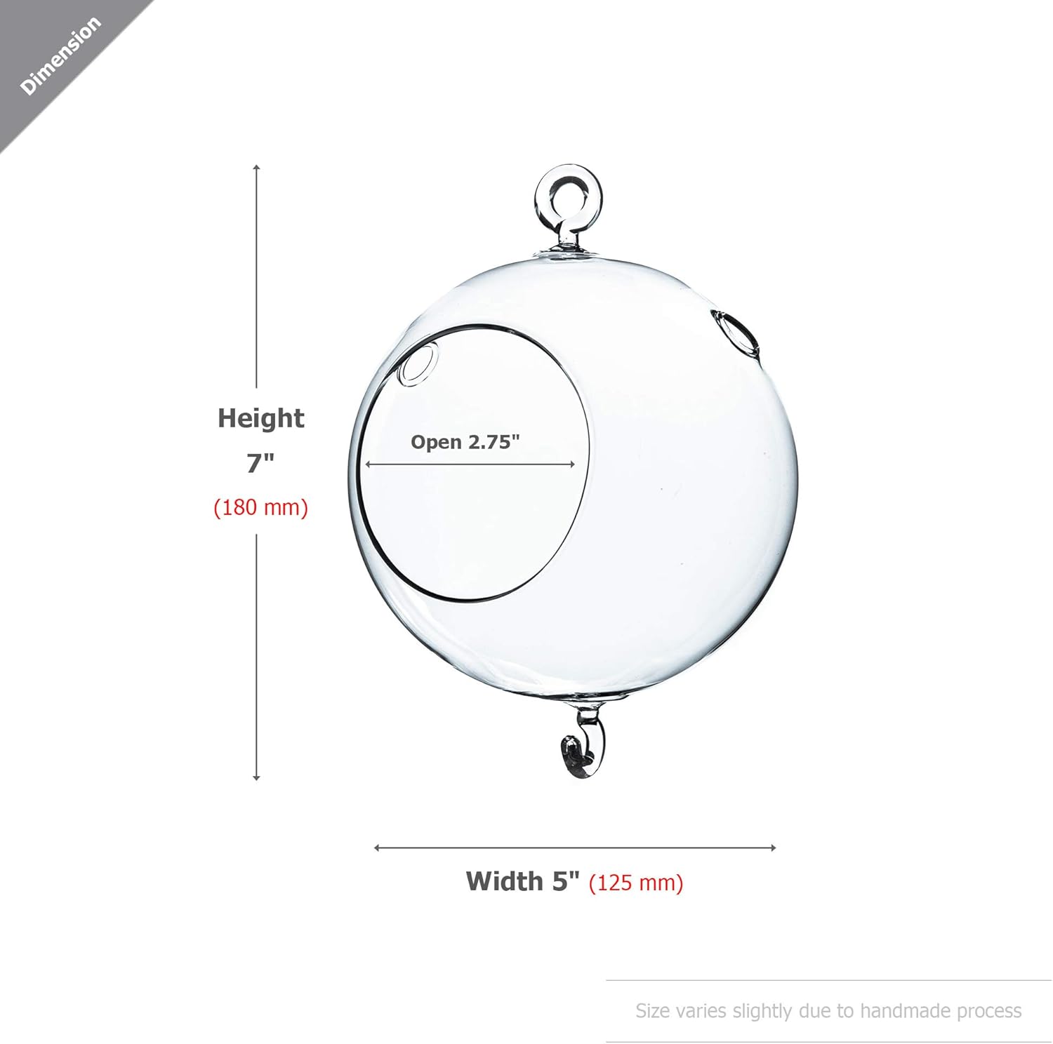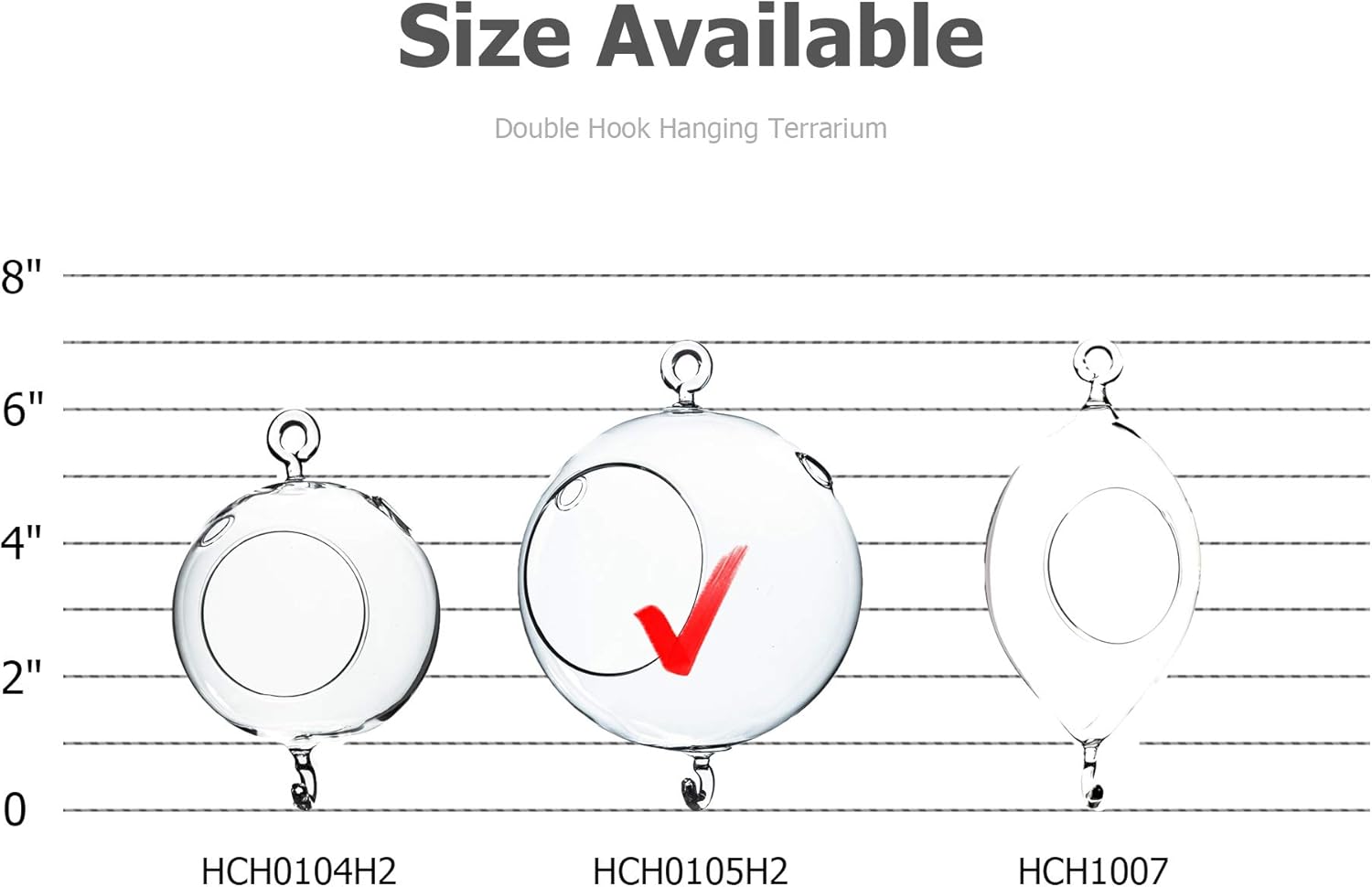 WGV Hanging Terrarium Globe, Width 5", Height 7", Double Hook, DIY Air Succulent Planter, Clear Glass Vase Orb, Candle Holder for Windowsill Outdoor Garden Decor, 1 Piece
