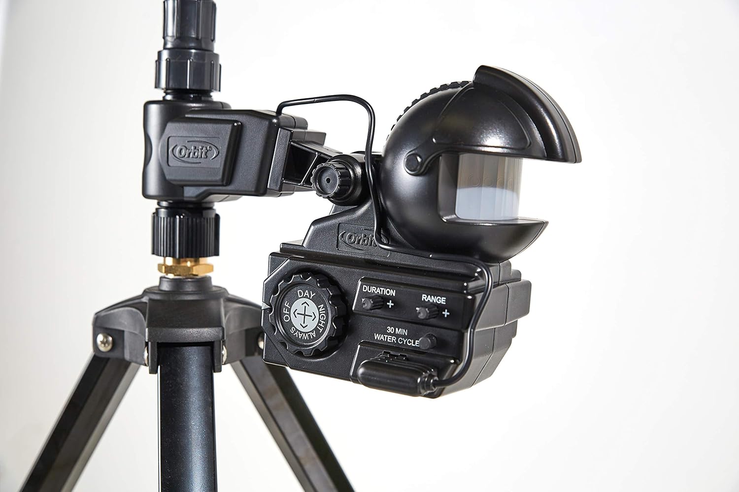 - SENSOR-ACTIVATED YARD SECURITY SPRINKLER - The heat and motion-activated sensor detects movement up to 40 feet away, triggering a burst of water to keep unwanted visitors away.