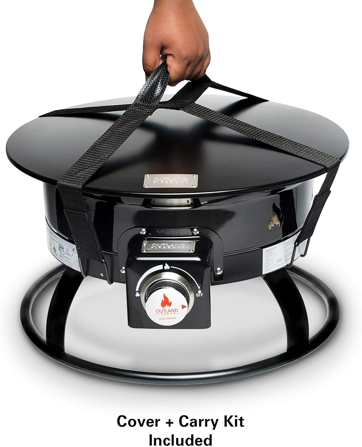 Outland Living Portable Propane Fire Pit, 19-inch, 58,000 BTU with Fire Pit Cover & Carry Kit, Smokeless Gas Firebowl | Perfect for Camping, Patio, Backyard, Tailgating, Deck, RV| Black 893 Deluxe