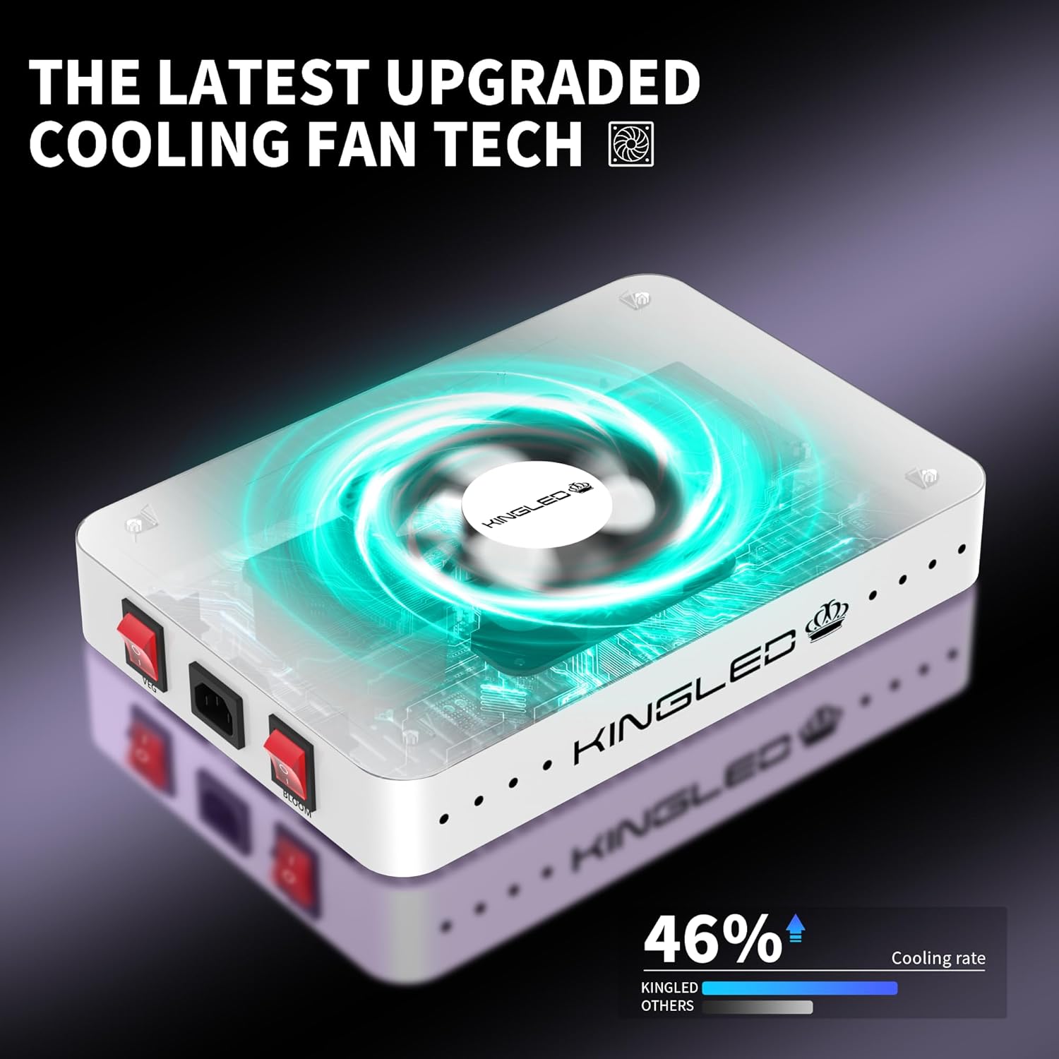 - Efficient Heat Dissipation: The aluminum heat sink and metal construction make excellent heat dissipation, keeping the temperature within optimal levels (50Β°f to 60Β°f); This cooling system prevents overheating, allowing the light to work efficiently without harming plants; Having the high-speed mute fans, the light remains quiet and stable, increasing its lifespan