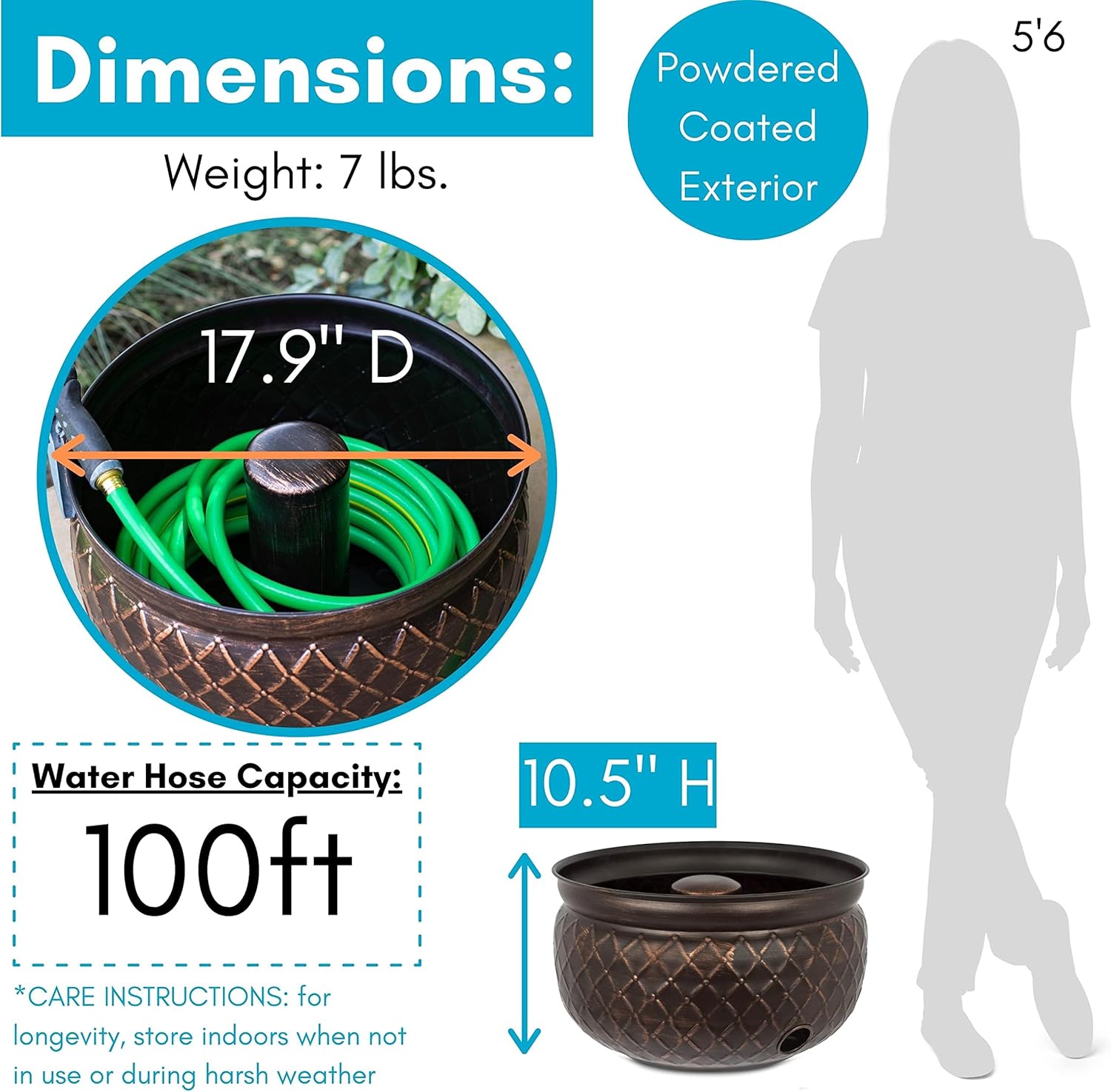 - DECORATIVE AND FUNCTIONAL: This 17.9"L x 17.9"W x 10.5βH water hose holder adds an attractive touch to your backyard, patio, or deck while keeping your hose neatly hidden and protected from dirt and dust.