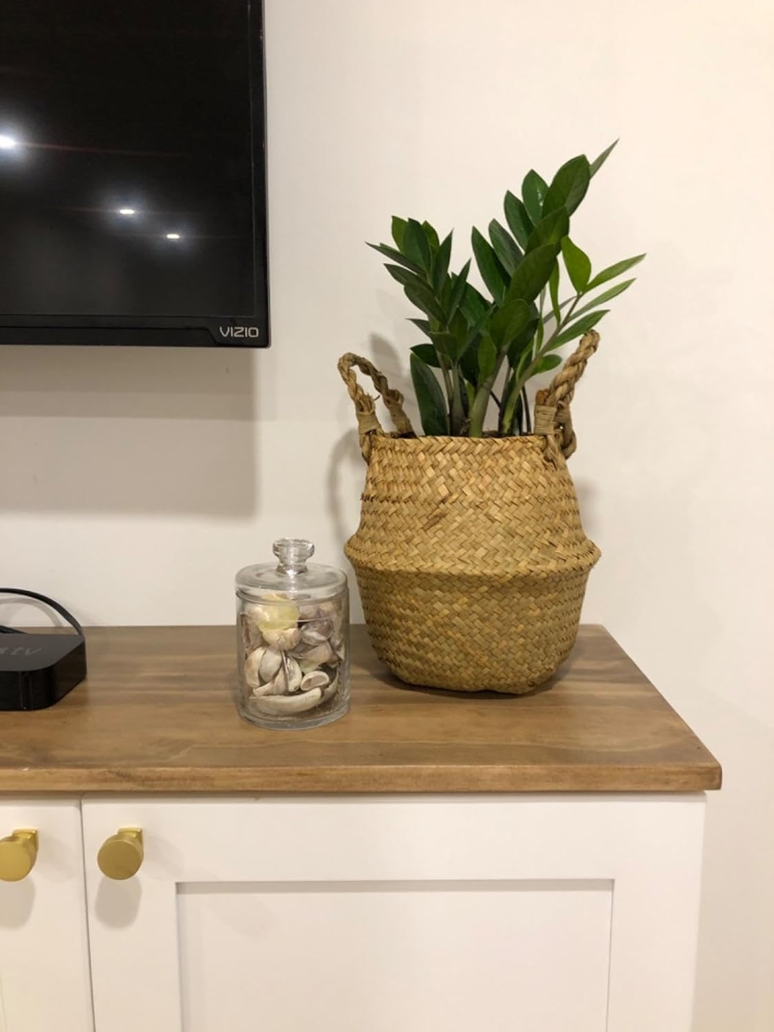 DOKOT Seagrass Plant Basket with Handles, Woven Storage Basket, 7inch Diameter x 8inch Height