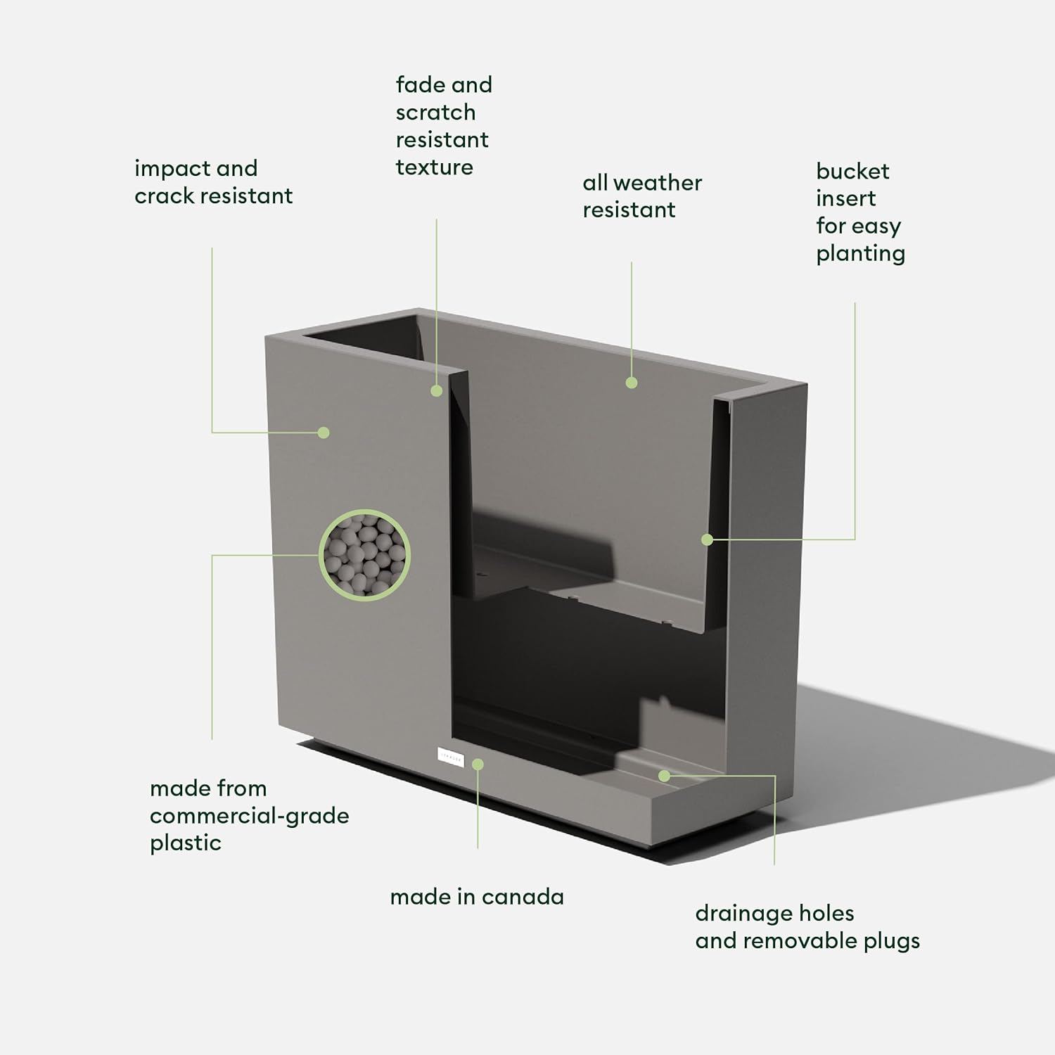 Veradek Block Series Span Plastic Planter - Tall Rectangular Planter for Indoor or Outdoor Patio/Porch, Gray, 24.25 in Height, 12 in Width, 30 in Length