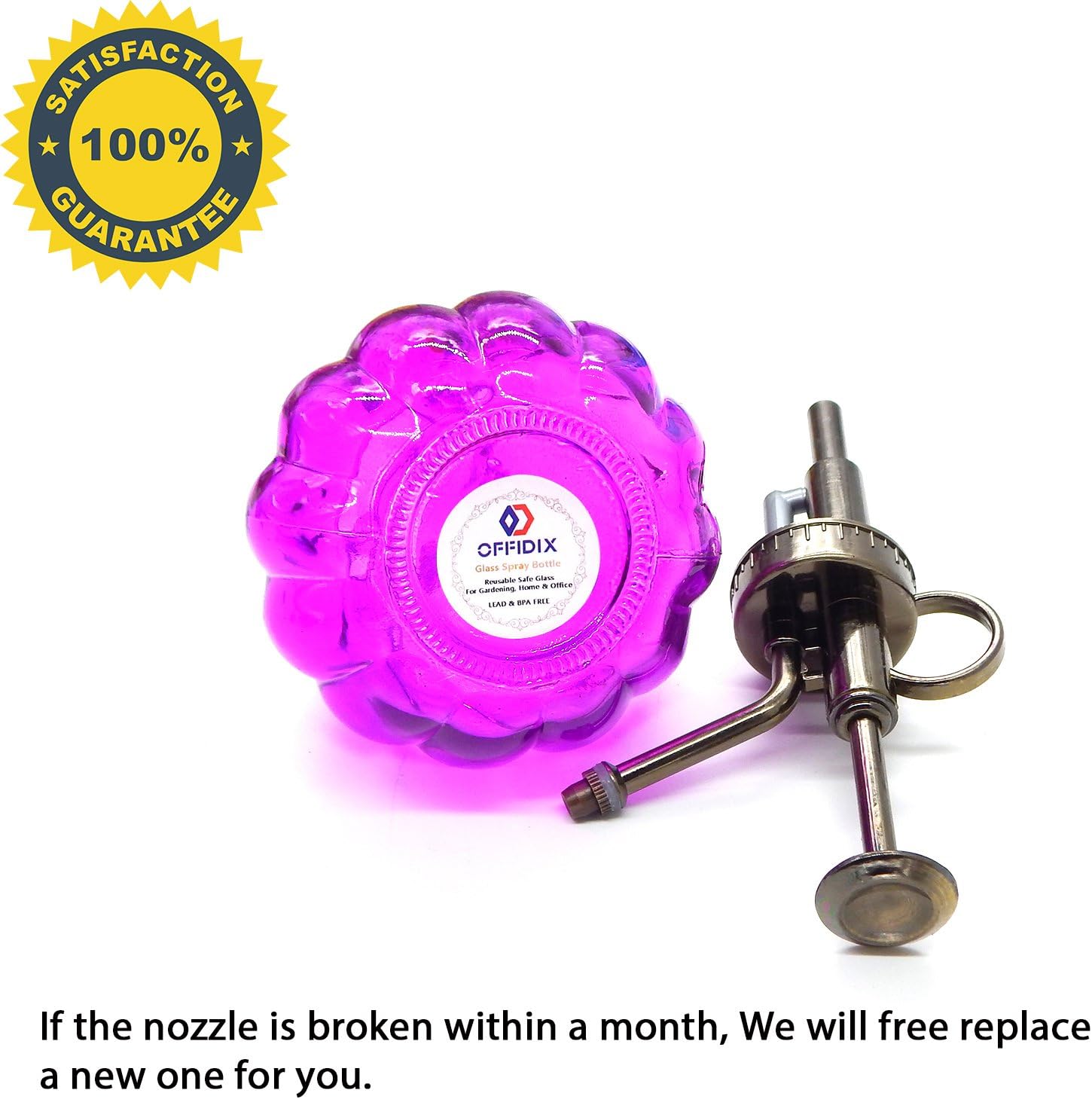 OFFIDIX Glass Watering Spray Bottle, 6.3" Tall Vintage Style Plant Mister with Bronze Plastic Top Pump One Hand Watering Can Glass Spary Bottle (Dark Purple)