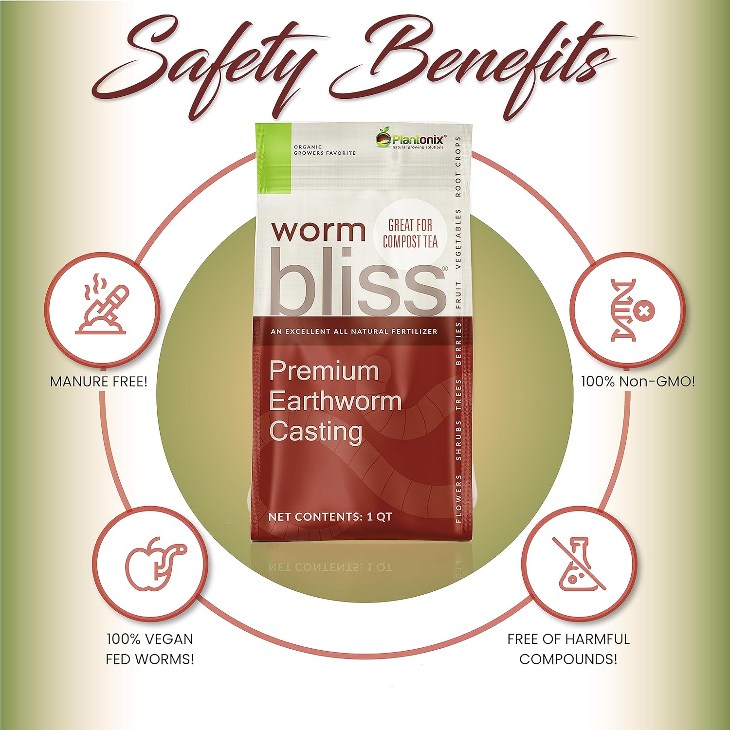 - Organic Worm Castings for Garden Soil - Plantonix Worm Bliss is a 100% organic fertilizer and soil amendment that mixes with potting soil for indoor plants and outdoor plants. Worm castings are rich in essential nutrients like nitrogen, phosphorus, and potassium, as well as trace minerals that improve soil conditions for better overall plant mass.