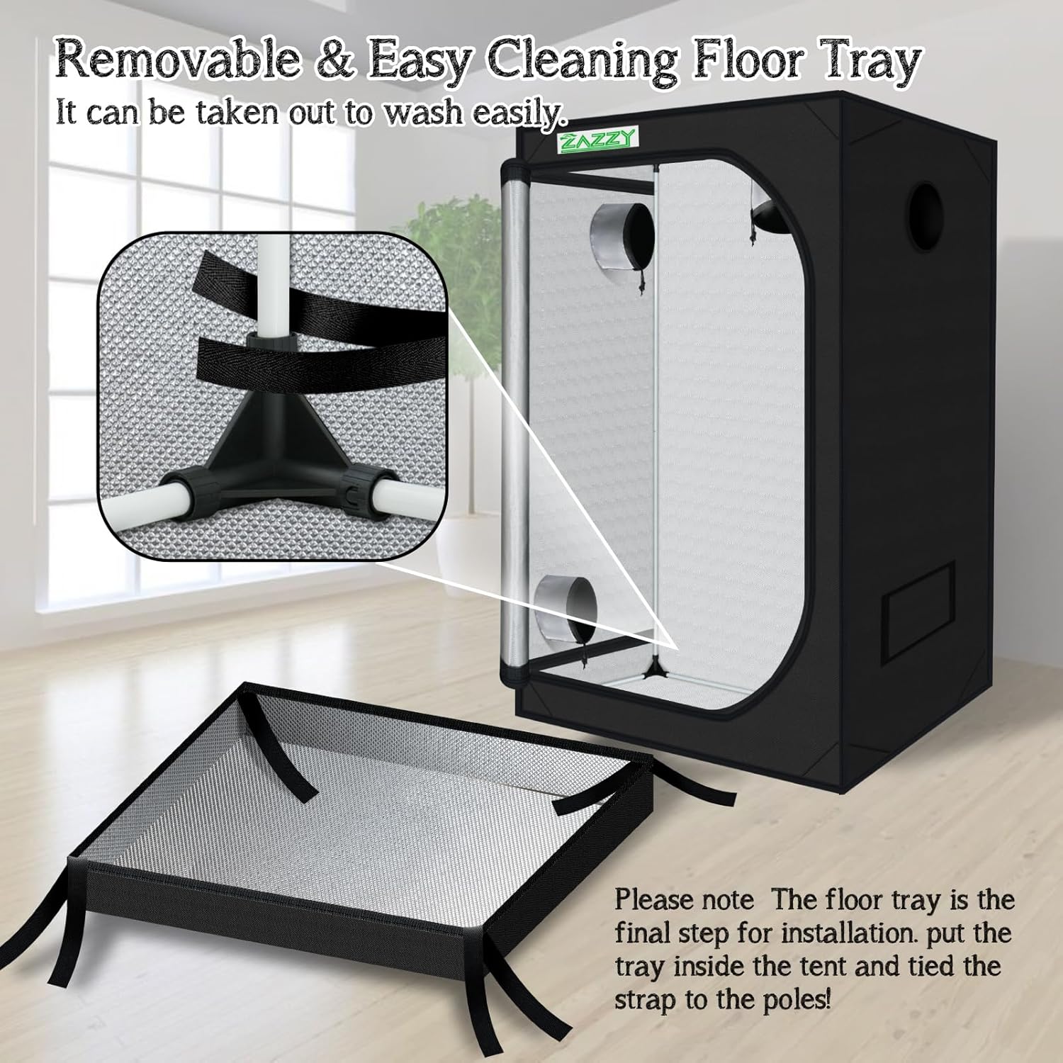 - 【Top-Quality Materials and Sturdy Frame】Zazzy plant grow tent made of superior quality reflective 600D mylar and double stitched to ensures the light blocking. Heavy duty all steel poles which are rated to handle at least 110 lbs. The frame is specially finished to ensure smooth installation and safe handling.