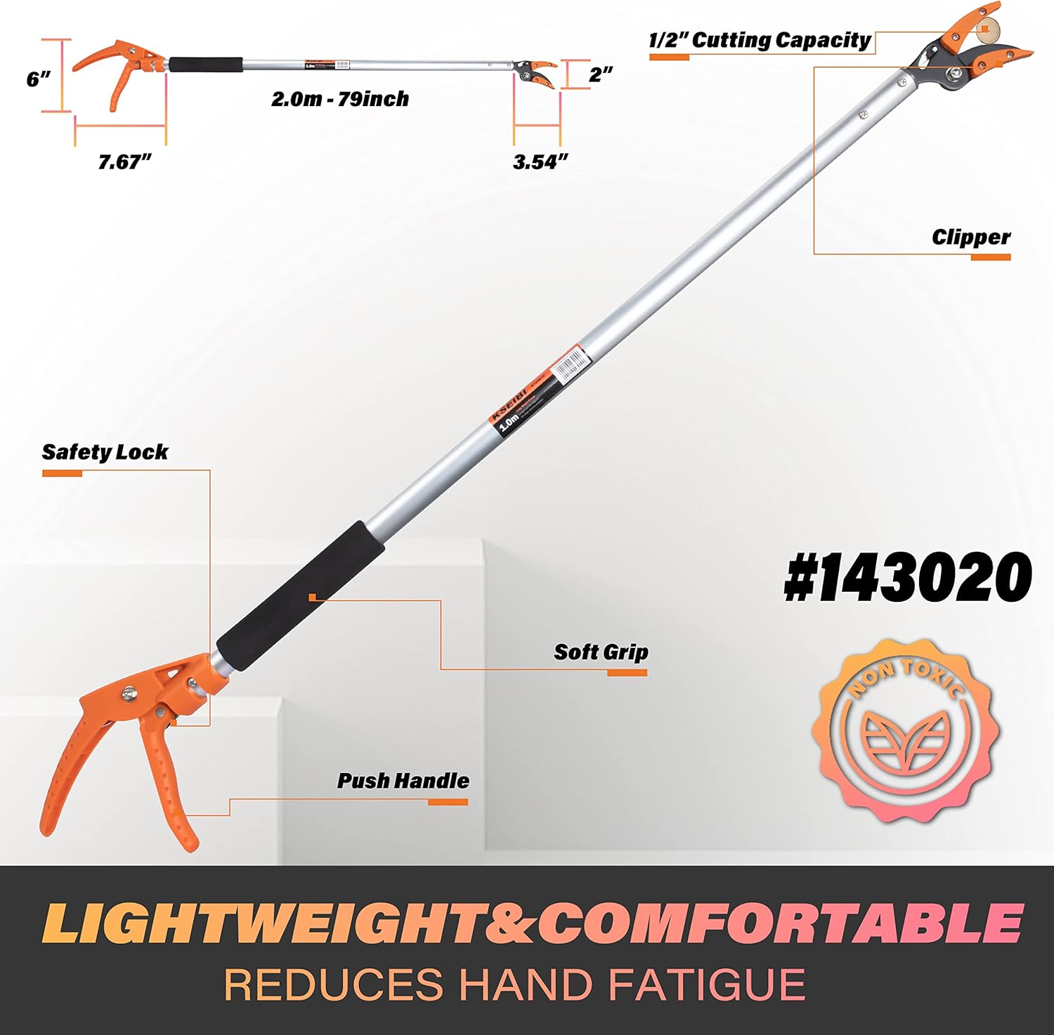 KSEIBI 143020 Long Reach Cut and Hold Bypass Pruner Max Cutting 1/2 inch (7.0 ft - 2.0m)