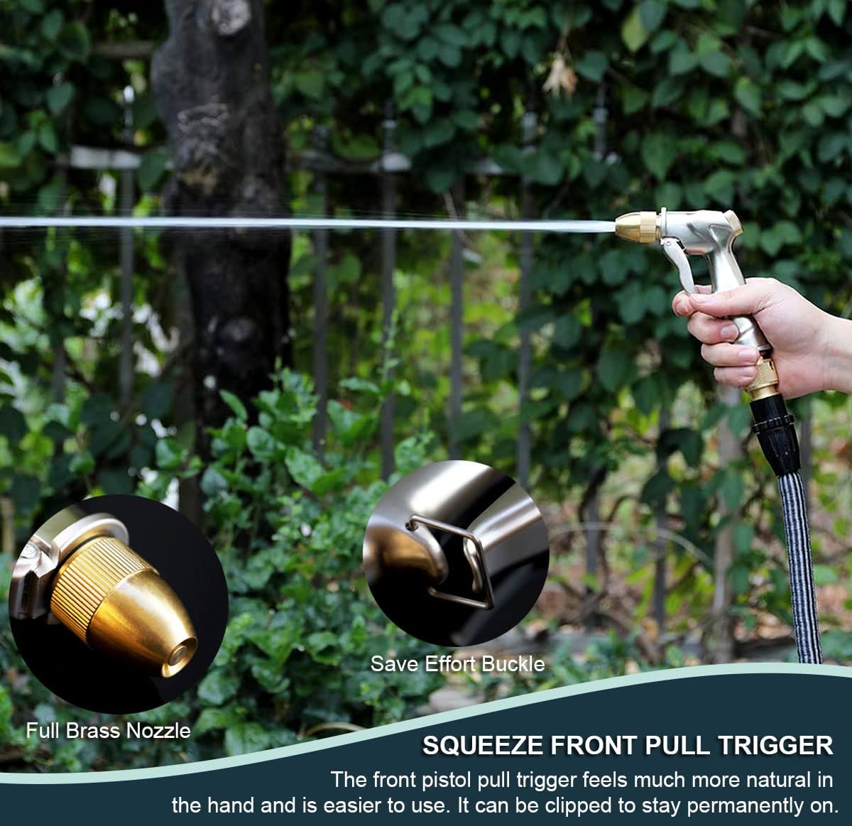 - [LEAK-PROOF]-One piece design and a rubber hose washer provides a durable and tight seal to eliminate leak. Consistent water flow in all positions and directions, our spray nozzle also has completely shutting off function. The adjustable copper brass sprayer can not only enhanced the overall quality of hose nozzle, but perfectly prevent the mental rust.