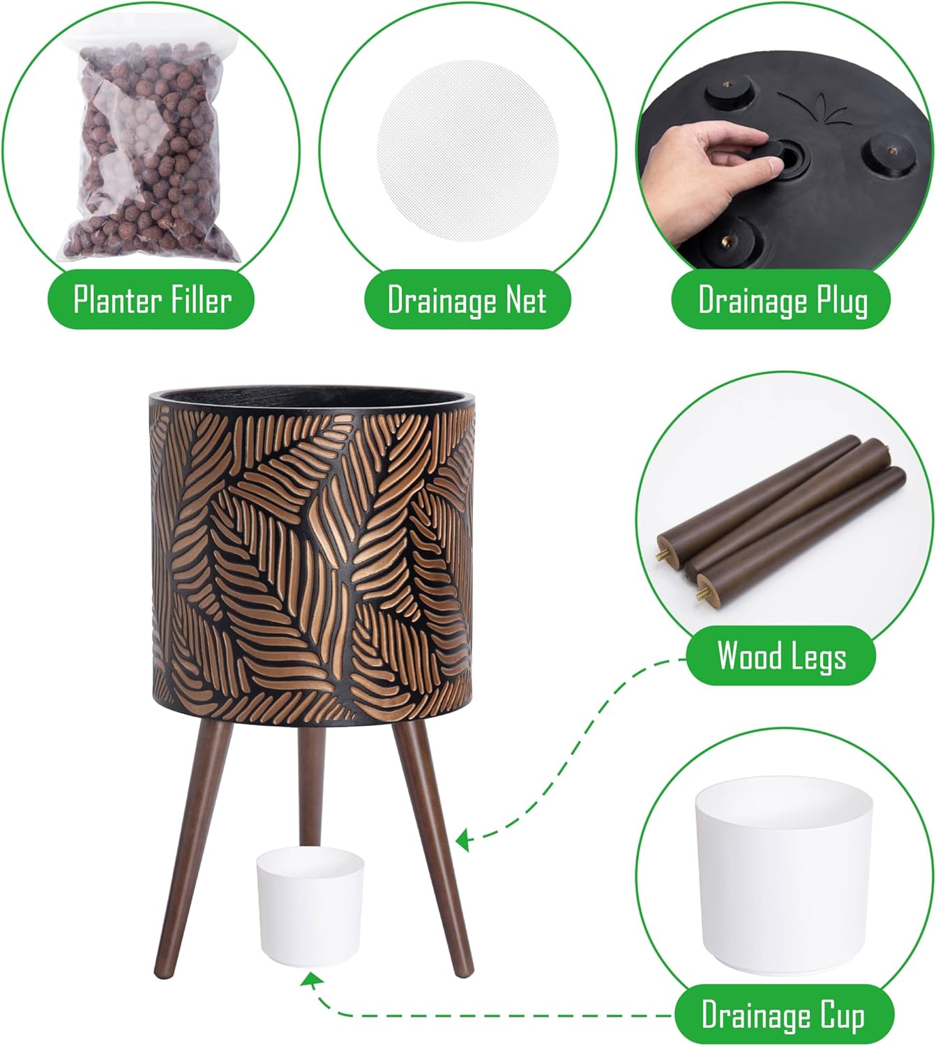 - Whatβs included: planter pot with drainage hole, drainage plug, set of stand β 3 solid wooden legs.