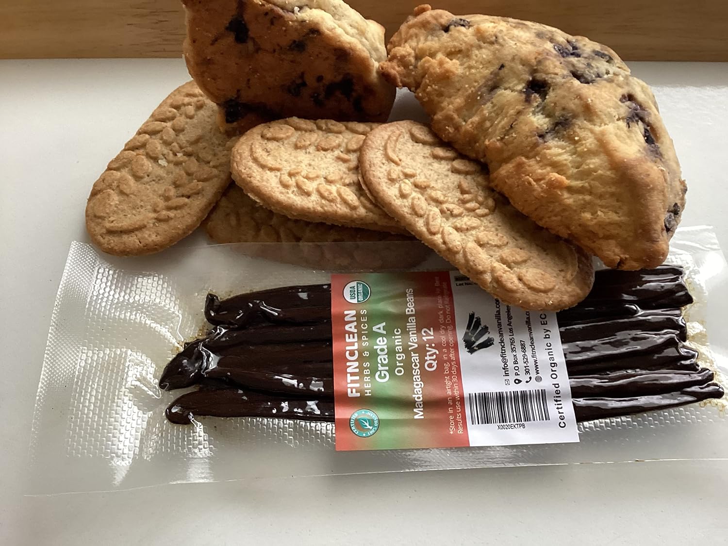 12 Organic Madagascar Vanilla Beans Grade A. Certified USDA Organic 6"-7.5" by FITNCLEAN VANILLA for Chefs, Extract, Baking and Essence. Gourmet Bourbon NON-GMO Whole Pods