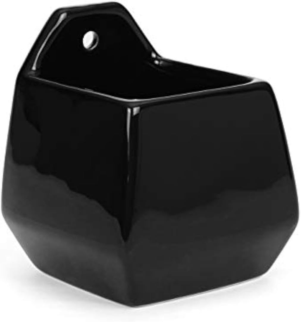 Milltown Merchants Succulent Wall Planter - Wall Vase - Black Ceramic Wall Mounted Planter - Succulent Plant Pot - Hanging Vase for Living Wall (1 Pack/Contemporary/Black)