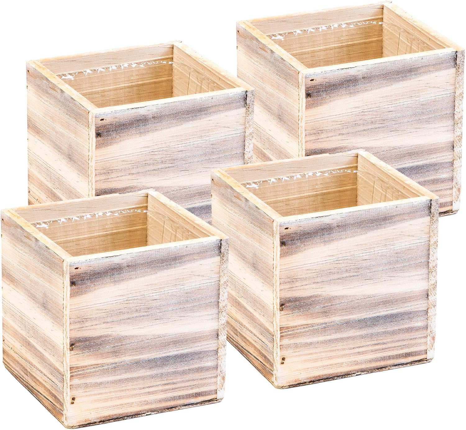 Wooden Planter Box, Rustic Whitewash with Plastic Liner l Garden Decor l Restaurant and Wedding Decorations l Wedding Bouquets, Table Centerpiece (5x5 Set of 4, Whitewash)