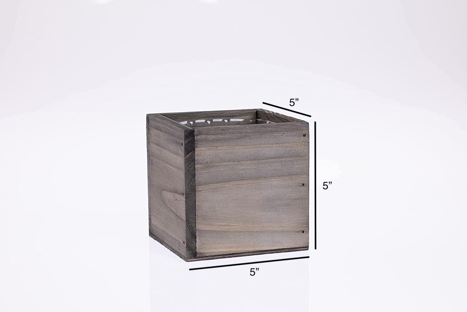 Wooden Planter Box, Rustic Barn Wood with Plastic Liner l Garden Decor l Restaurant and Wedding Decorations l Wedding Bouquets, Table Centerpiece (5x5 Set of 4, Natural)