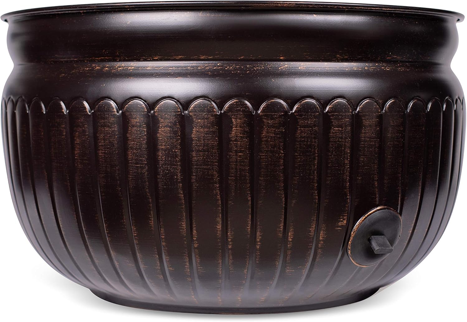 BIRDROCK HOME Water Hose Holder - Decorative Metal Pot, Indoor or Outdoor, Garden Storage Organizer, Patio Portable Bucket - Distressed Bronze, Holds up to 100ft Hoses, Medium No Lid