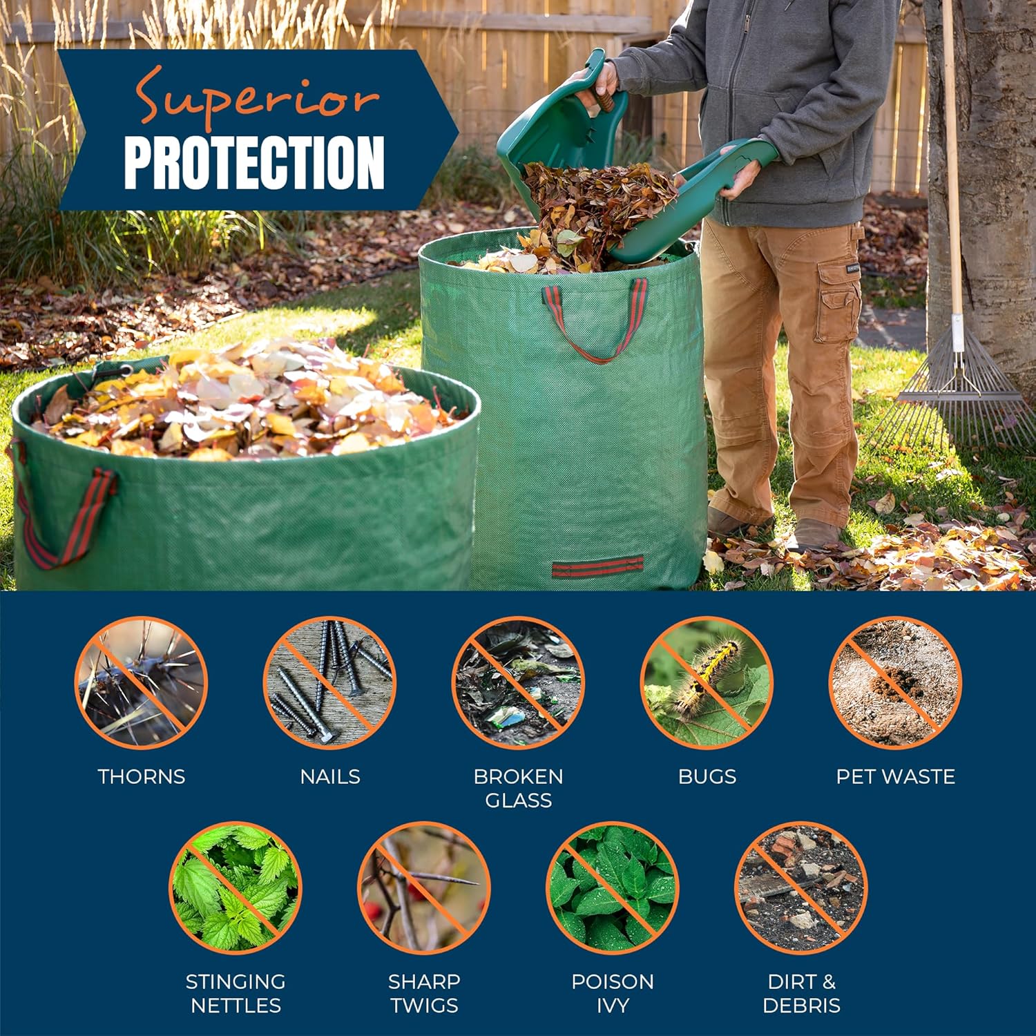 - WE HEARD YOU. You told us our leaf scoops were too thin and we upgraded it V2.0. With thicker, reinforced materials, our leaf scoops are more durable to handle heavier loads. We even made the scoops more compact for easier storage. We all know the shed and garage and getting packed with too much stuff. Get easier leaf raking and scooping, without having to bend over as deep. Quick and easy, simply grab and drop into your paper lawn and refuse trash bags.