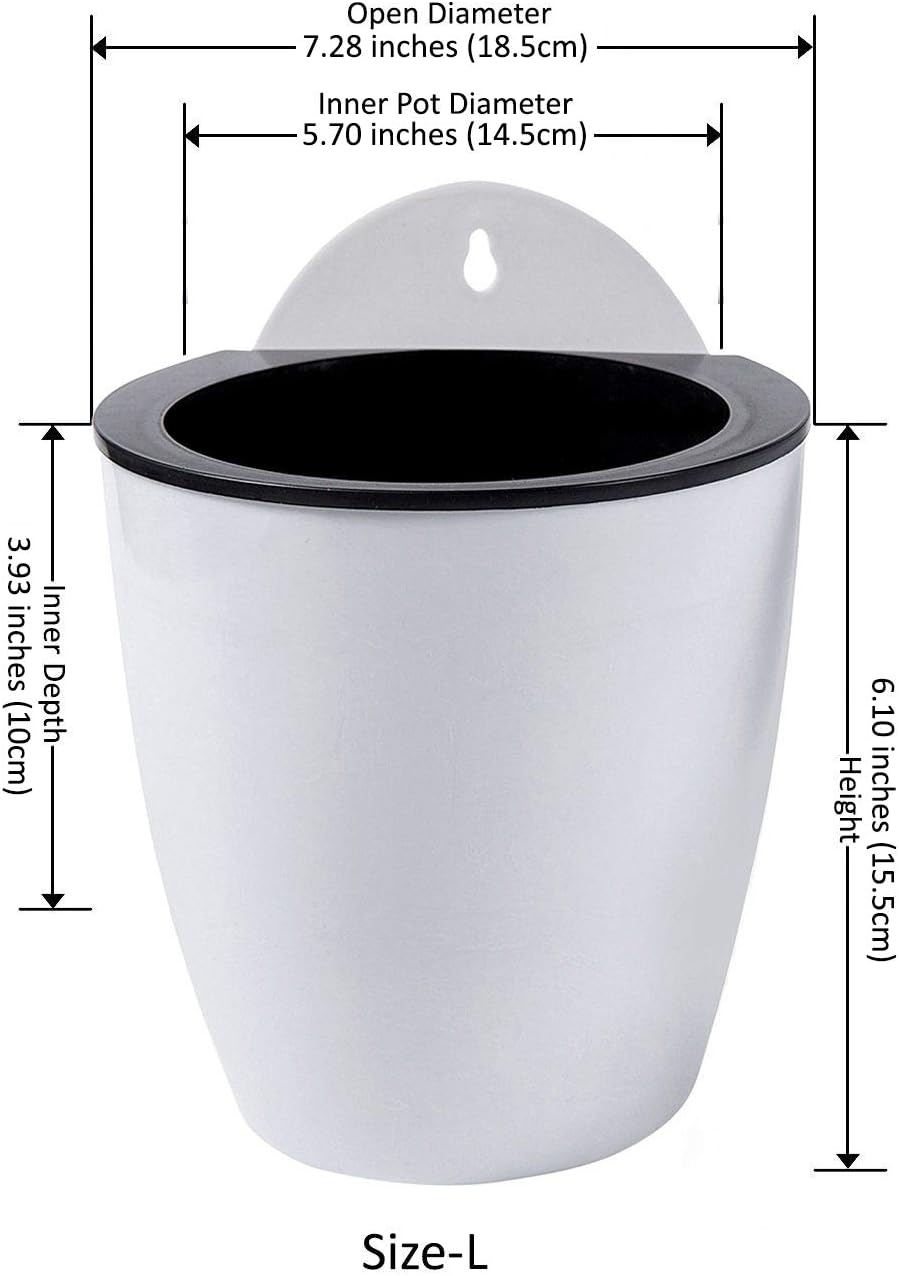 - [ Size: ] Outer Pot Diameter 7.28 inches and Height 6.1 inches. Inner Pot Diameter 5.7 inches and Height 3.93 inches. Top Opening for Soil and Plant has a diameter of 5 inches. Made with lightweight durable PP plastic
