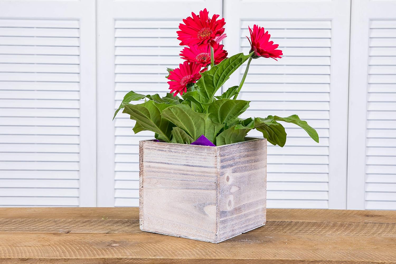 Wooden Planter Box, Rustic Barn Whitewash with Plastic Liner l Garden Decor l Restaurant and Wedding Decorations l Wedding Bouquets, Table Centerpiece (6x6 Set of 2, Whitewash)