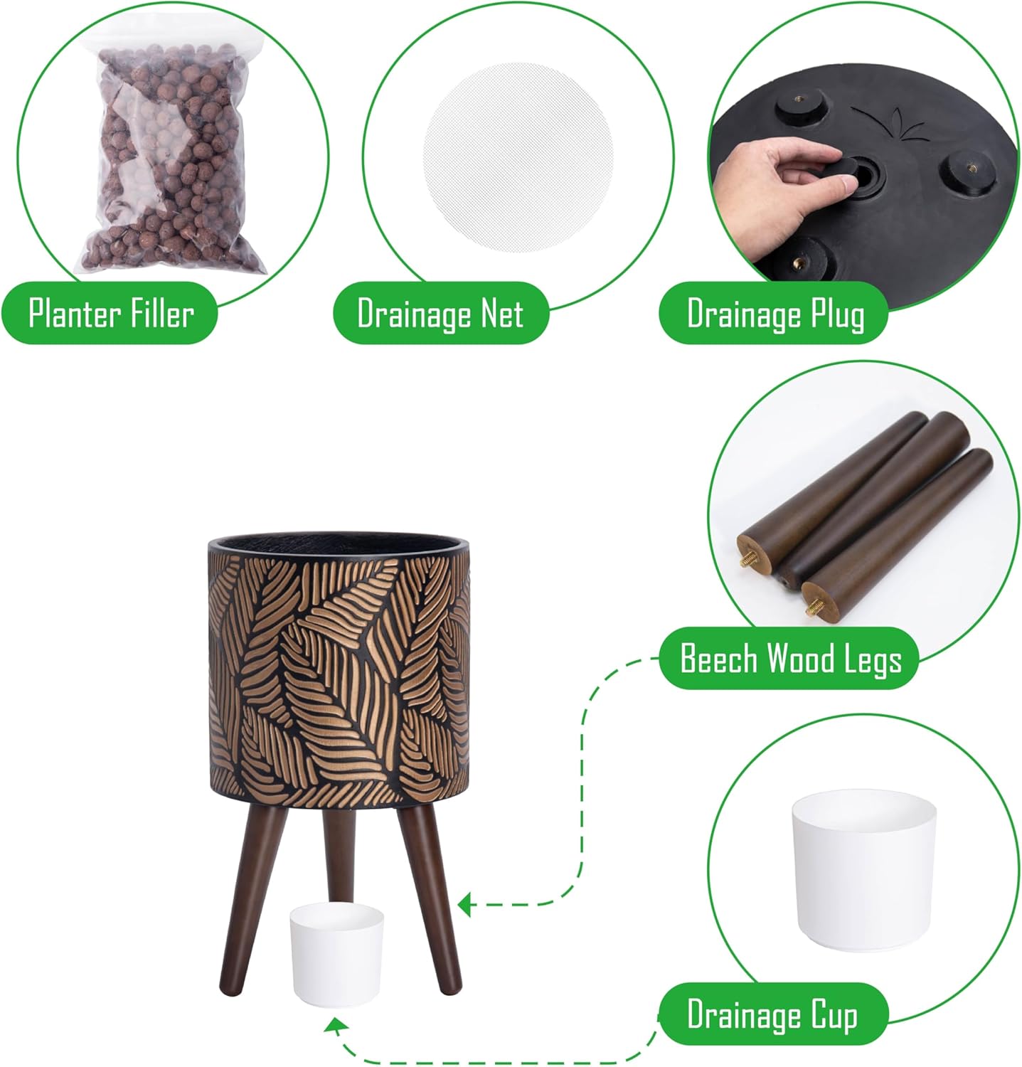 - Whatβs included: planter pot with drainage hole, drainage plug, set of stand β 3 solid wooden legs.