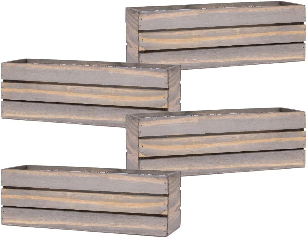 Wood Planter Box with Wine Crate Styled, 12x4 Inch Rectangular, Rustic Barn Wood, Plastic Liner, Wedding Flowers Holder, Home and Venue (12x4 Wine Crate Set of 4, Natural)