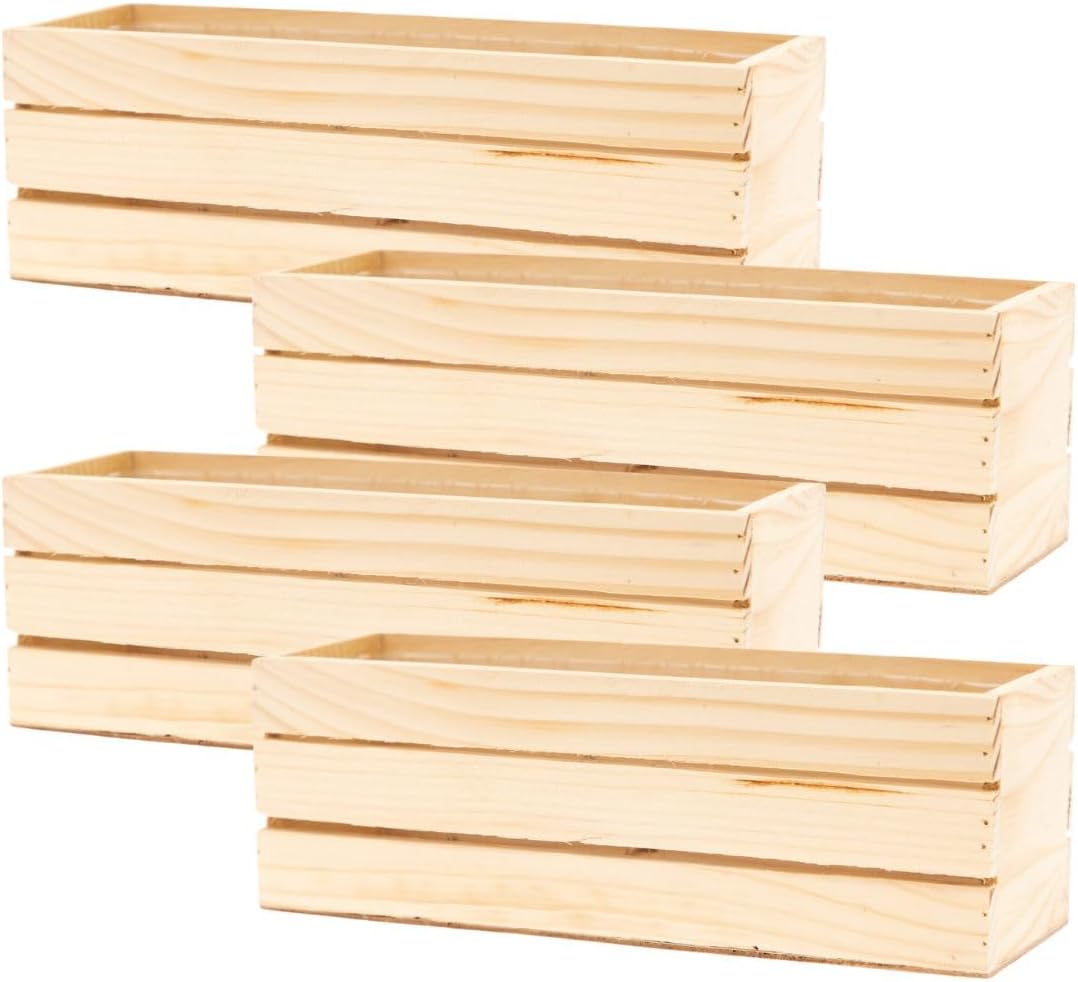 Wood Planter Box with Wine Crate Styled, 12x4 Inch Rectangular, Rose Wood, Plastic Liner, Garden Centerpiece Display, Wedding Flowers Holder, Home and Venue Decor (12x4 Wine Crate Set of 4, Rose Wood)