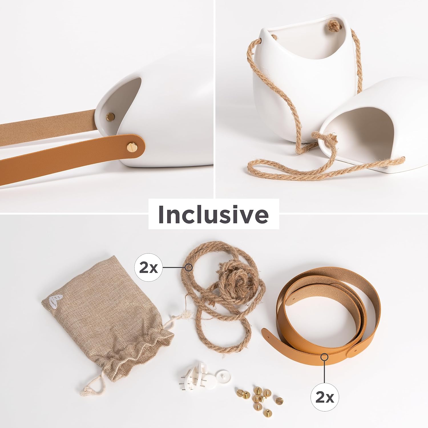 - Multipurpose Usage: Each set consists of 2 glazed ceramic wall vases, and comes with 2 different sets of hangers. Brown hemp ropes are already pre-assembled on the pots.
