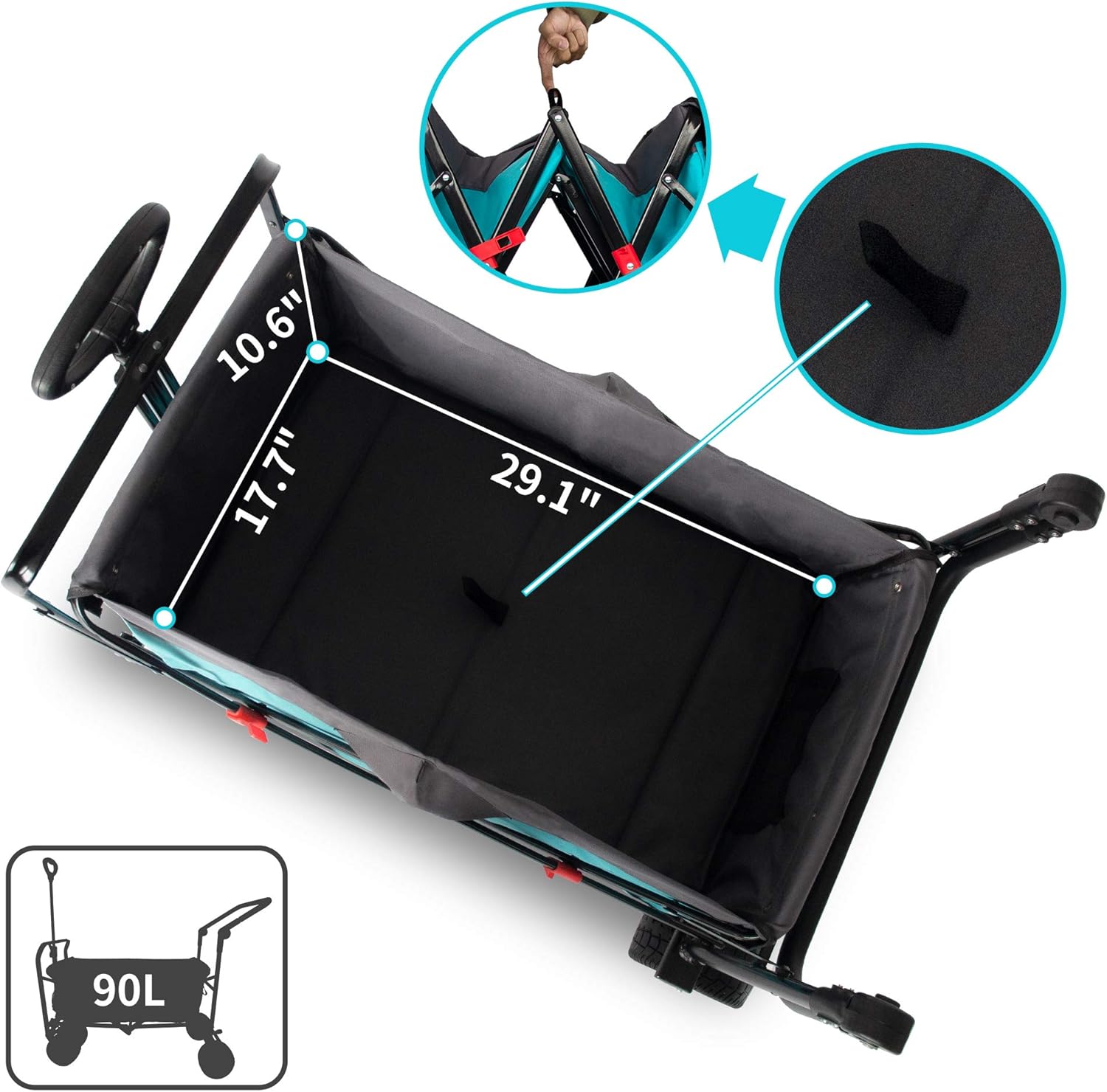 TMZ All Terrain Utility Folding Wagon, Collapsible Garden Cart, Heavy Duty Beach Wagon, for Shopping, Camping, and Outdoor Activities with Push Handle and Brakes (Turquoise/Grey)