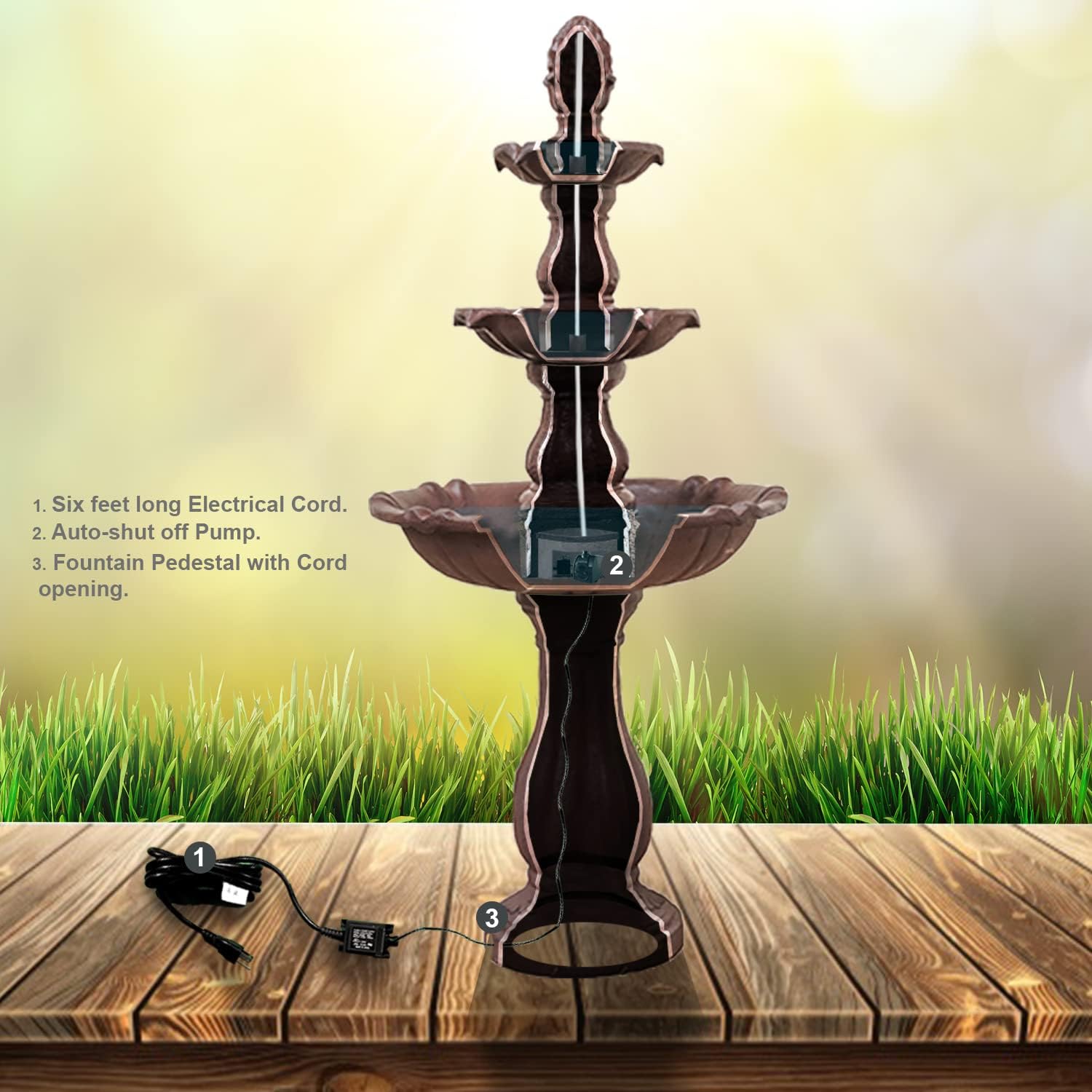 - GREAT SIZED AND LONG-LASTING: Fountain measures 23.23""W x 23.23""L x 52.36""H, cord length 6 feet, made of durable Fiber Resin that ensures high quality for years"