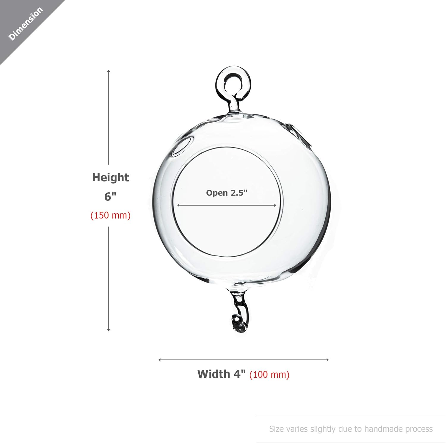 - Size: width 4"(10 cm) height 6"(15 cm) open 2.5" varies slightly due to handmade glass
