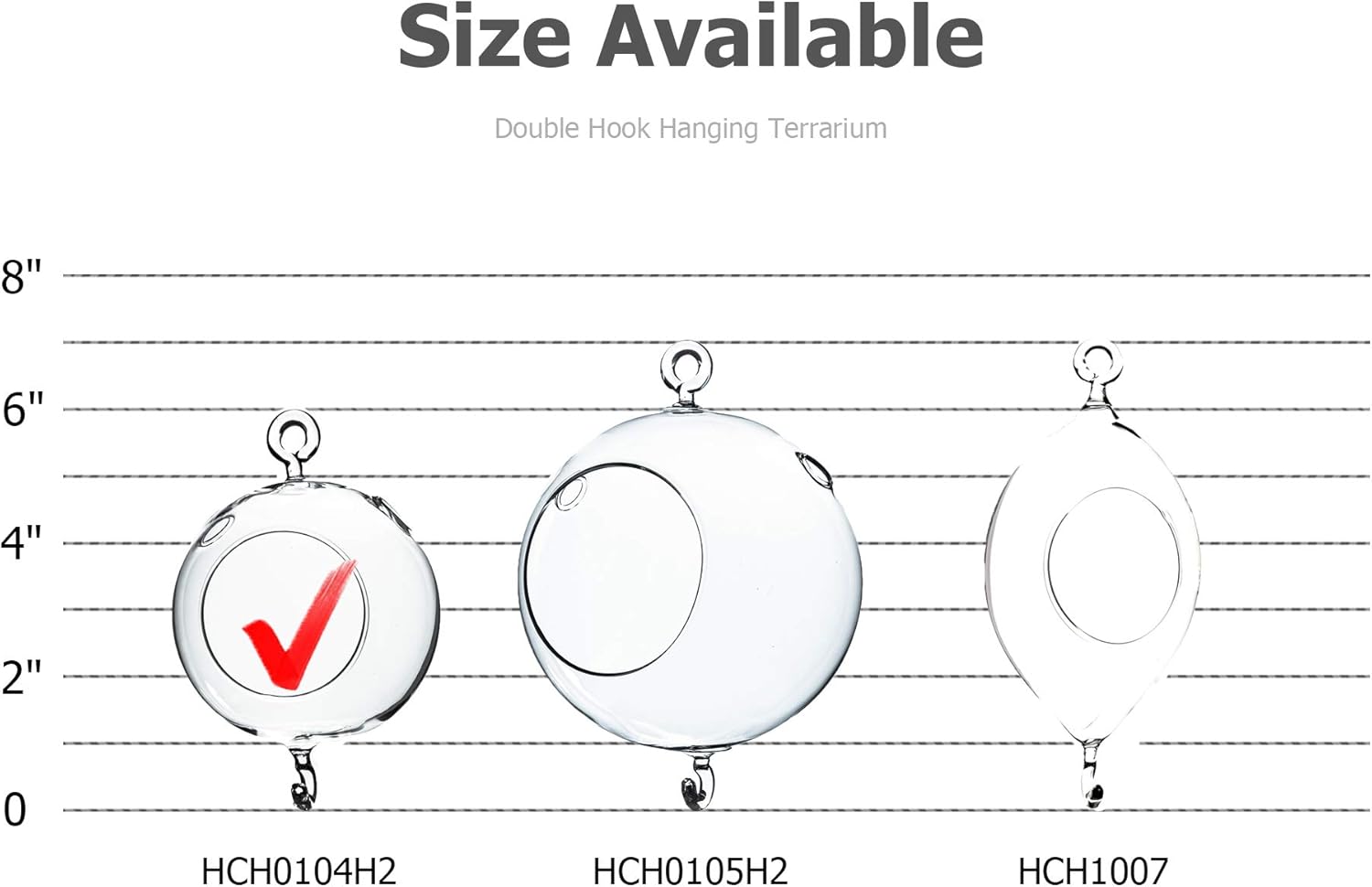 WGV Hanging Terrarium Globe, Width 4", Height 6", Double Hook, DIY Air Succulent Planter, Clear Glass Vase Orb, Candle Holder for Windowsill Outdoor Garden Decor, 1 Piece