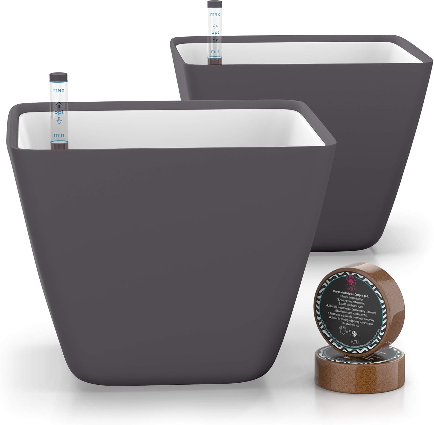 GARDENIX DECOR 5" Self Watering pots for Indoor Plants - Flower Pot with Water Level Indicator for Plants, Grow Tracking Tool - Self Watering Planter Plant Pot – 2 Pack Gray