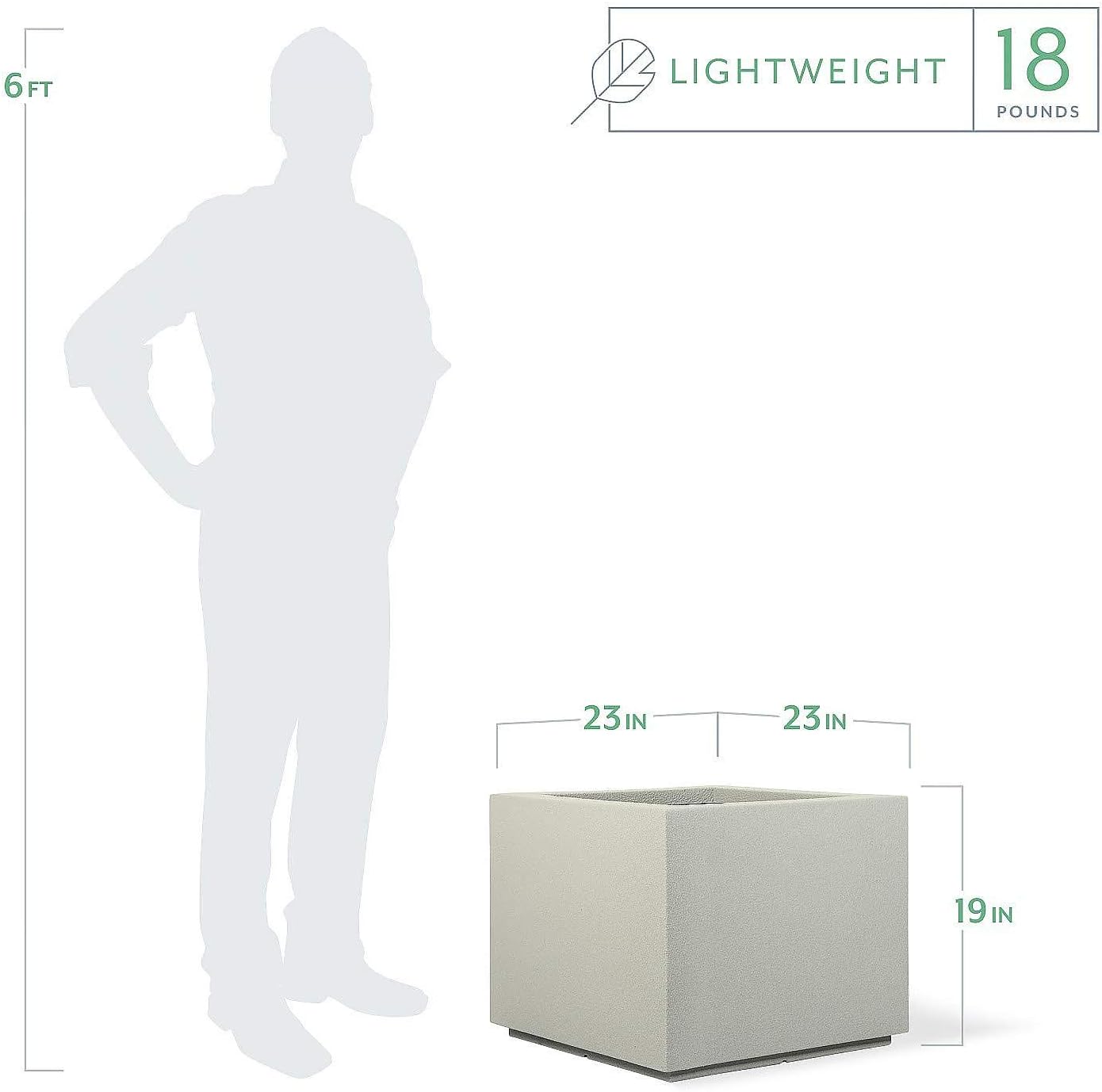 PolyStone Monterray Modern Outdoor/Indoor Square Planter, Lightweight, Heavy Duty, Weather Resistant, Polymer Finish, Commercial Grade and Residential, 23" L x 23" W x 19" H (Greige)