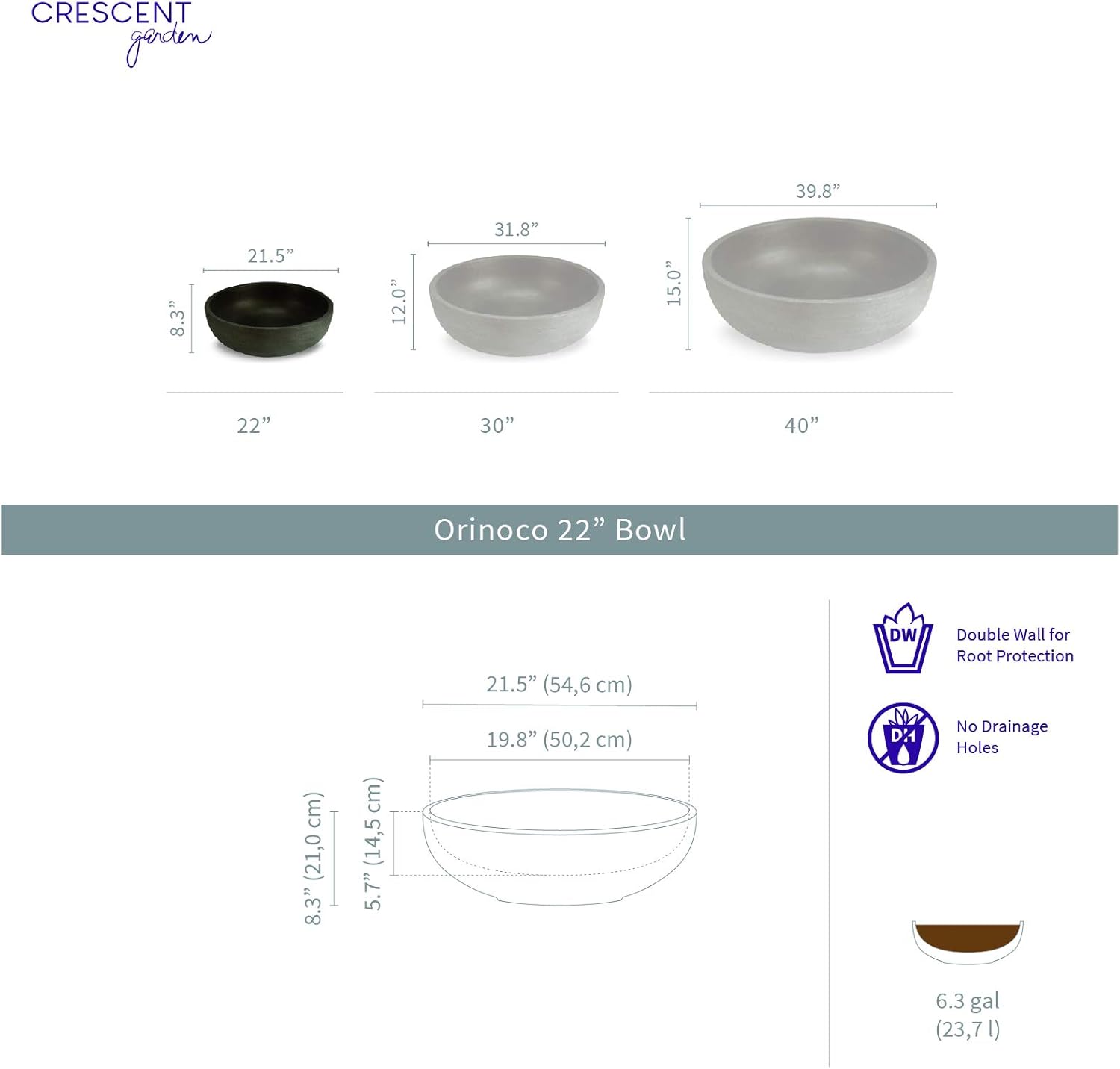 - WEATHER RESISTANT: Our durable planter structure will not fade in the summer or crack in the winter, making it the ideal planter all-year round. Please note the Orinoco 21” bowl does not have a drainage hole.