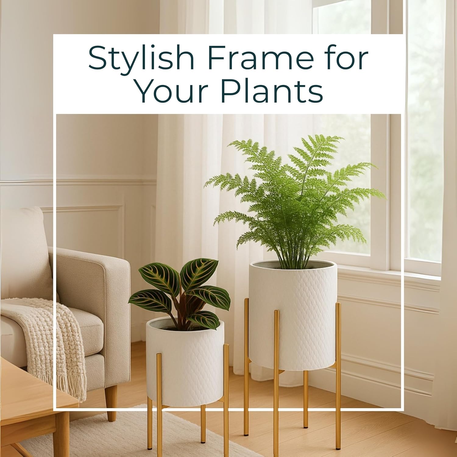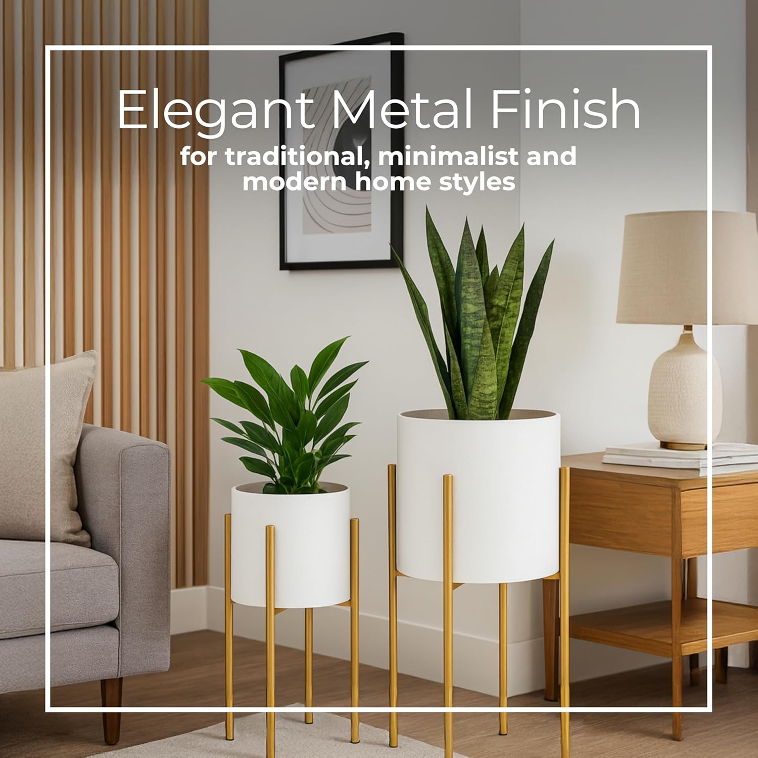 - Modern Minimalist Appeal: With clean lines, a slim profile, and a refined white finish, this metal modern plant pot with stand adds a fresh, contemporary touch that complements modern, minimalist, and transitional spaces beautifully.