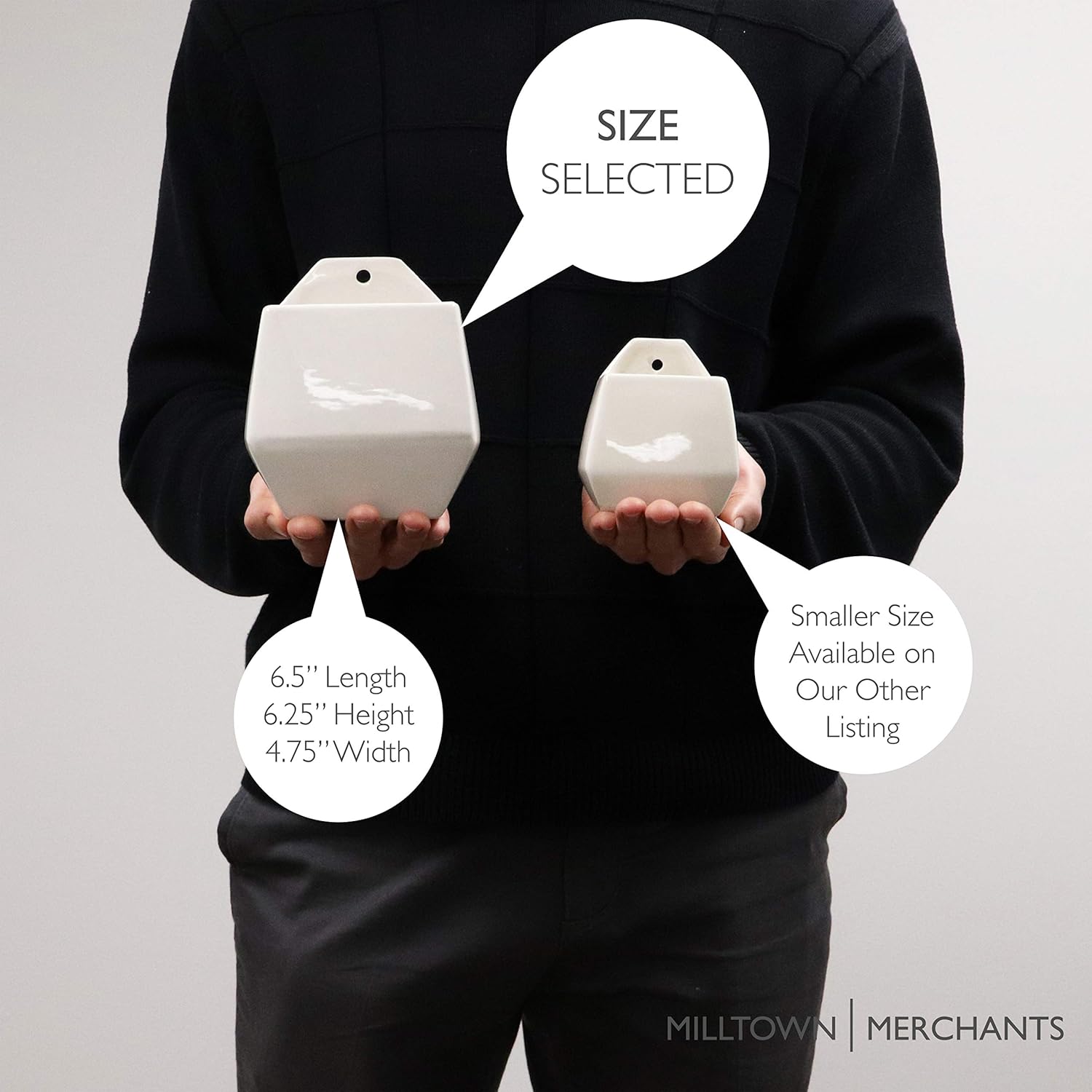 Milltown Merchants Succulent Wall Planters - Wall Vases - White Ceramic Wall Mounted Planters - Succulent Plant Pots - Hanging Vases for Living Wall (1 Pack/Contemporary/White)