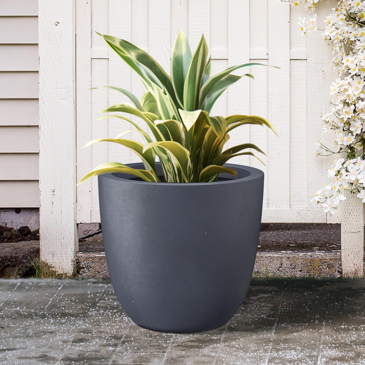 Kante 18 Inch Dia Round Concrete Planter, Indoor Outdoor Large Plant Pot with Drainage Hole and Rubber Plug for Home Patio Garden, Charcoal