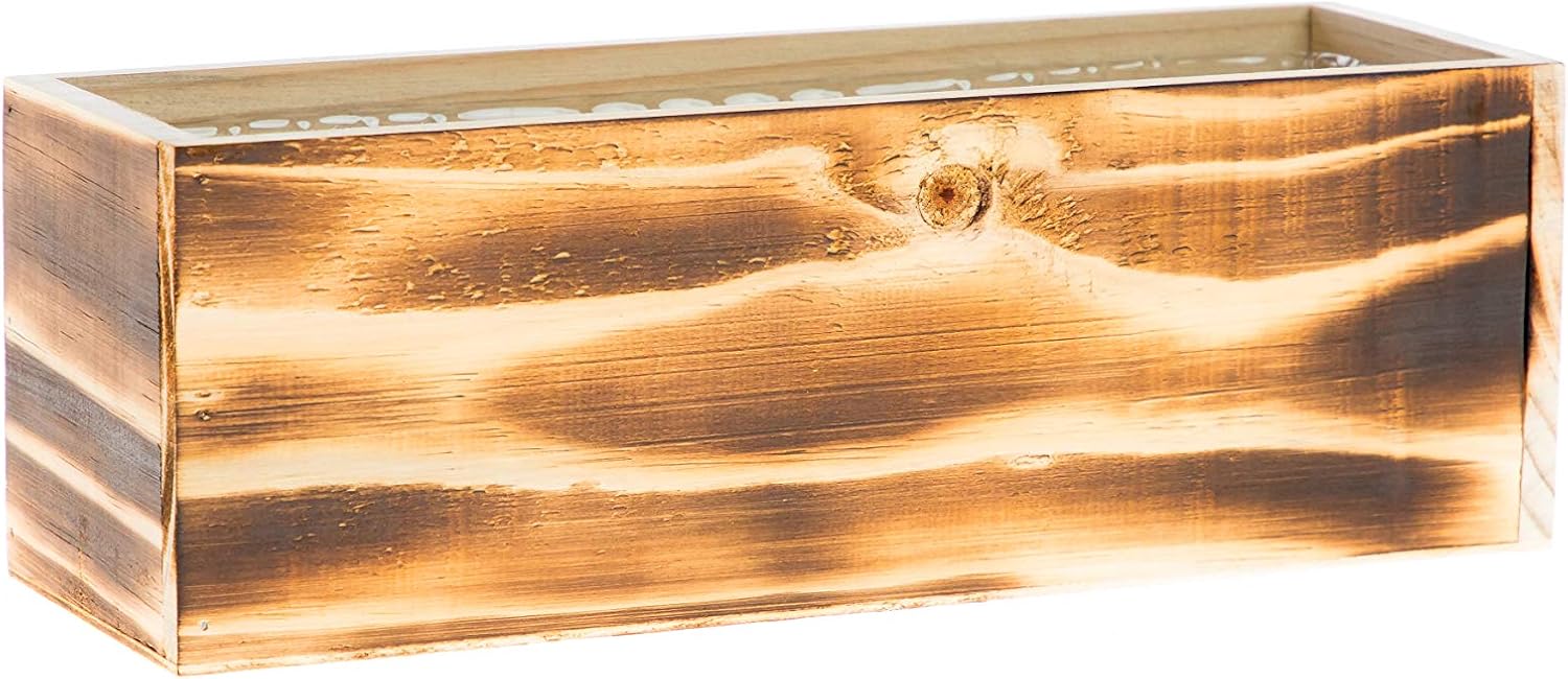 Wooden Planter Box, Rustic Barn Wood/Whitewash with Plastic Liner l Garden Decor l Restaurant and Wedding Decorations l Table Centerpiece (12x4 Set of 4, Burned Wood)