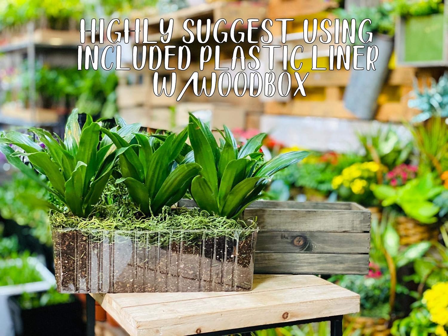 - ✔️PLASTIC LINER: With the included plastic liner, easily add dirt, moss or vase filler to this vessel. ✔️WARNING: Please do NOT remove our LINER for any water usage. The wood box are not waterproof and it will damage the box.