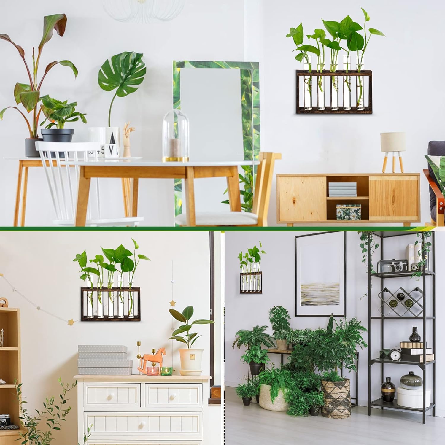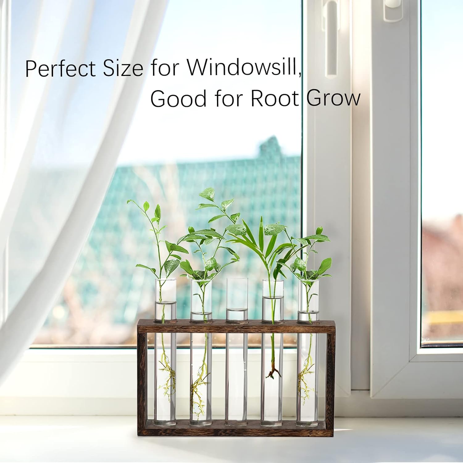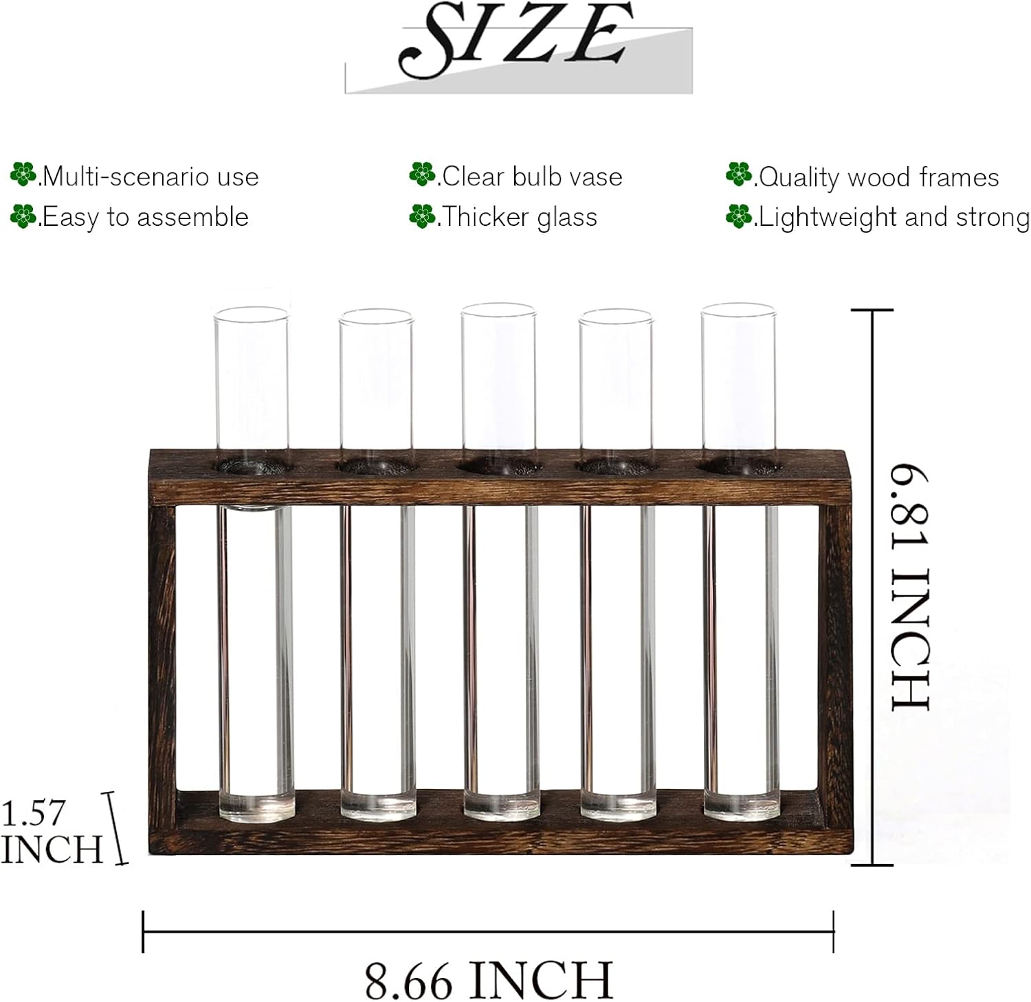 - ❥Scientific plant vase: Perfect combination of natural wood and clear glass, Made of natural wood, Unique 5 test tube wooden Plant Stand design. Simple rooting plant cuttings. Smooth surface, good permeability, beautiful shape, best desktop decorative elevate your home office décor and bring a touch of freshness and elegance to your house & office!
