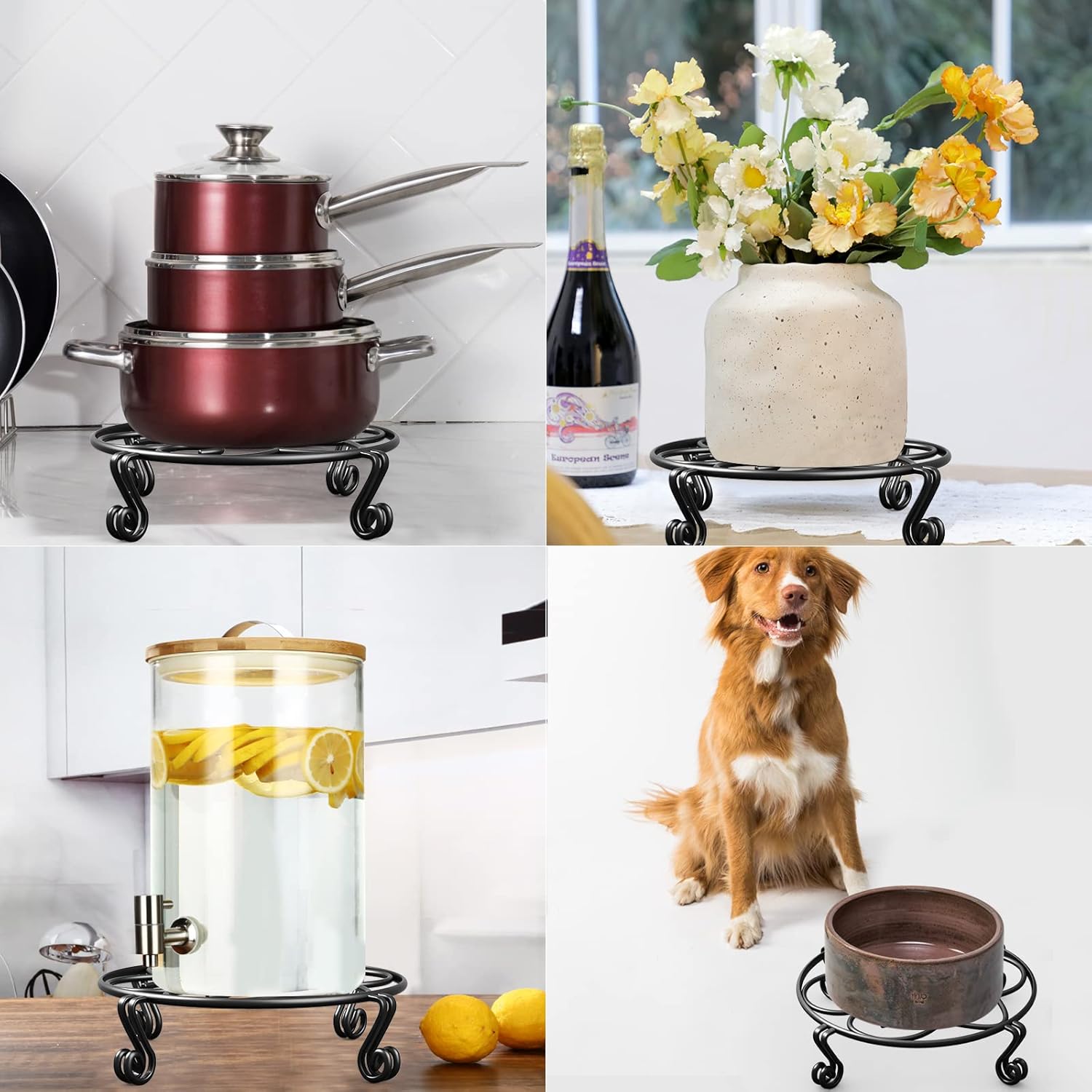 - 【CUTE AND BEAUTIFUL & MULTI-SCENARIO USE】: The round metal plant stand conformation is flowers pattern, cute and beautiful flower pot stand is a decoration itself, display your home beauty. This plant stand have three size ,they diameter are 9.4 Inches, 10.2 Inches, 11.8 Inches,they are suitable for anywhere, indoor and outdoor, garden, balcony, office, kitchen. You can place heavy plants, large potted trees, large vases, whiskey barrels, or heavy trash cans