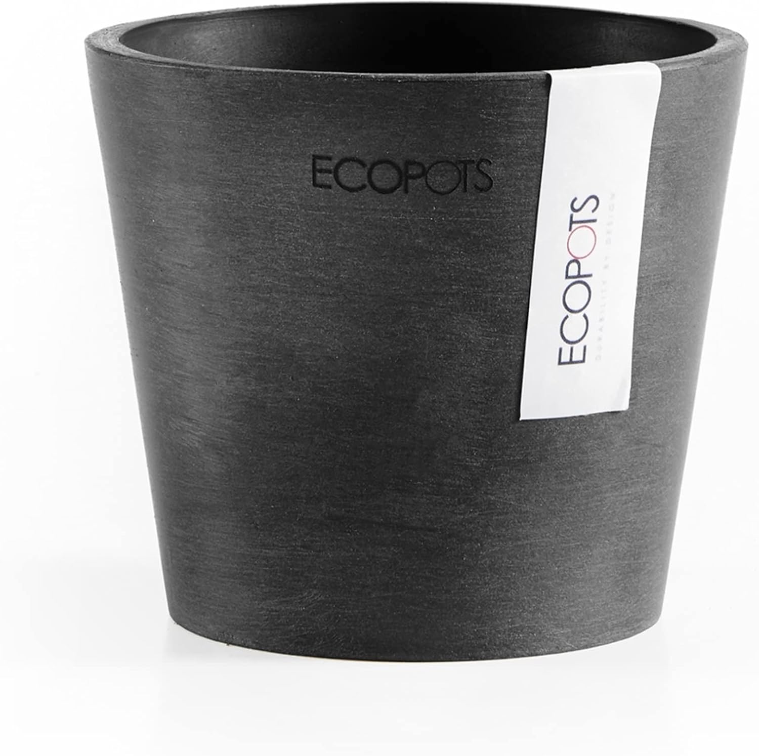 Ecopots Amsterdam Mini Durable Modern Round Recycled-Based Composite Flower Pot Planter, Dark Grey, 4"