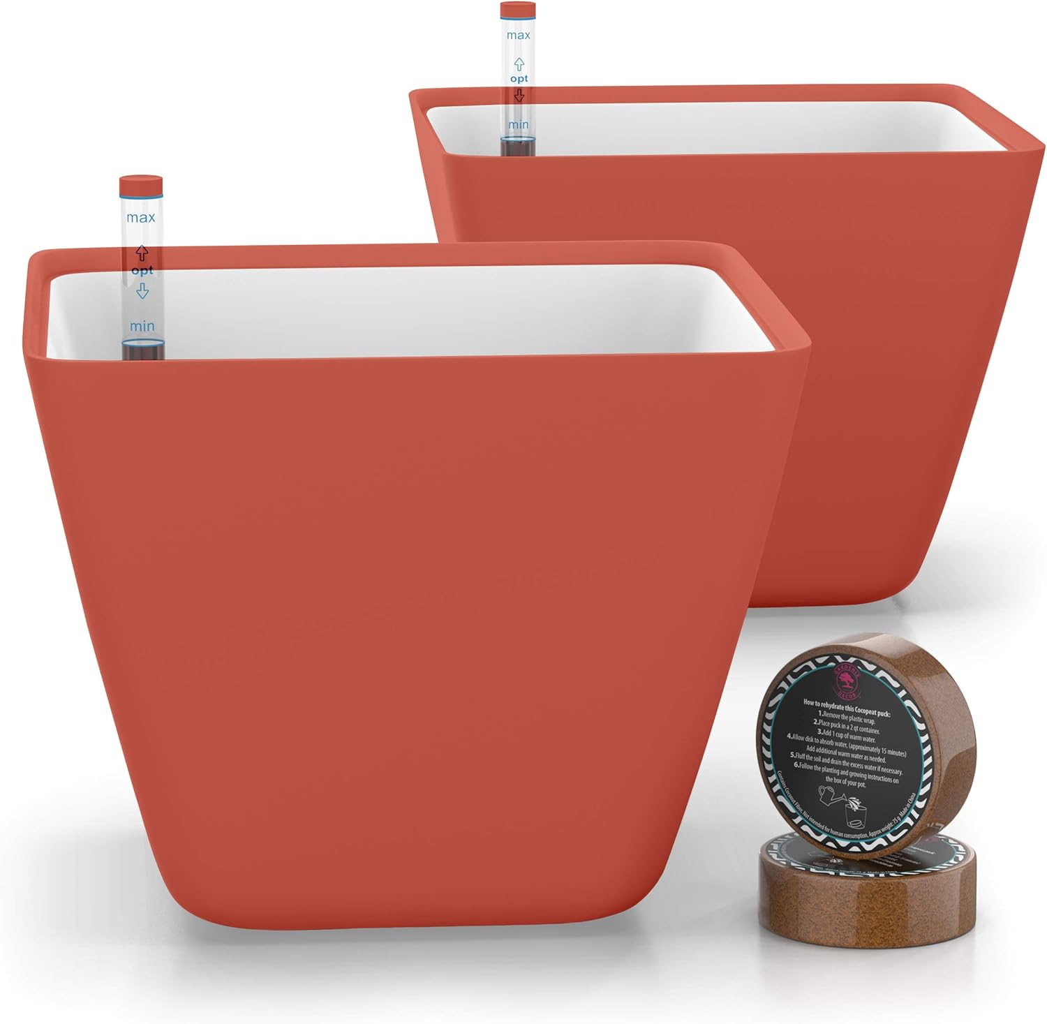 GARDENIX DECOR 5" Self Watering pots for Indoor Plants - Flower Pot with Water Level Indicator for Plants, Grow Tracking Tool - Self Watering Planter Plant Pot – 2 Pack Terracota