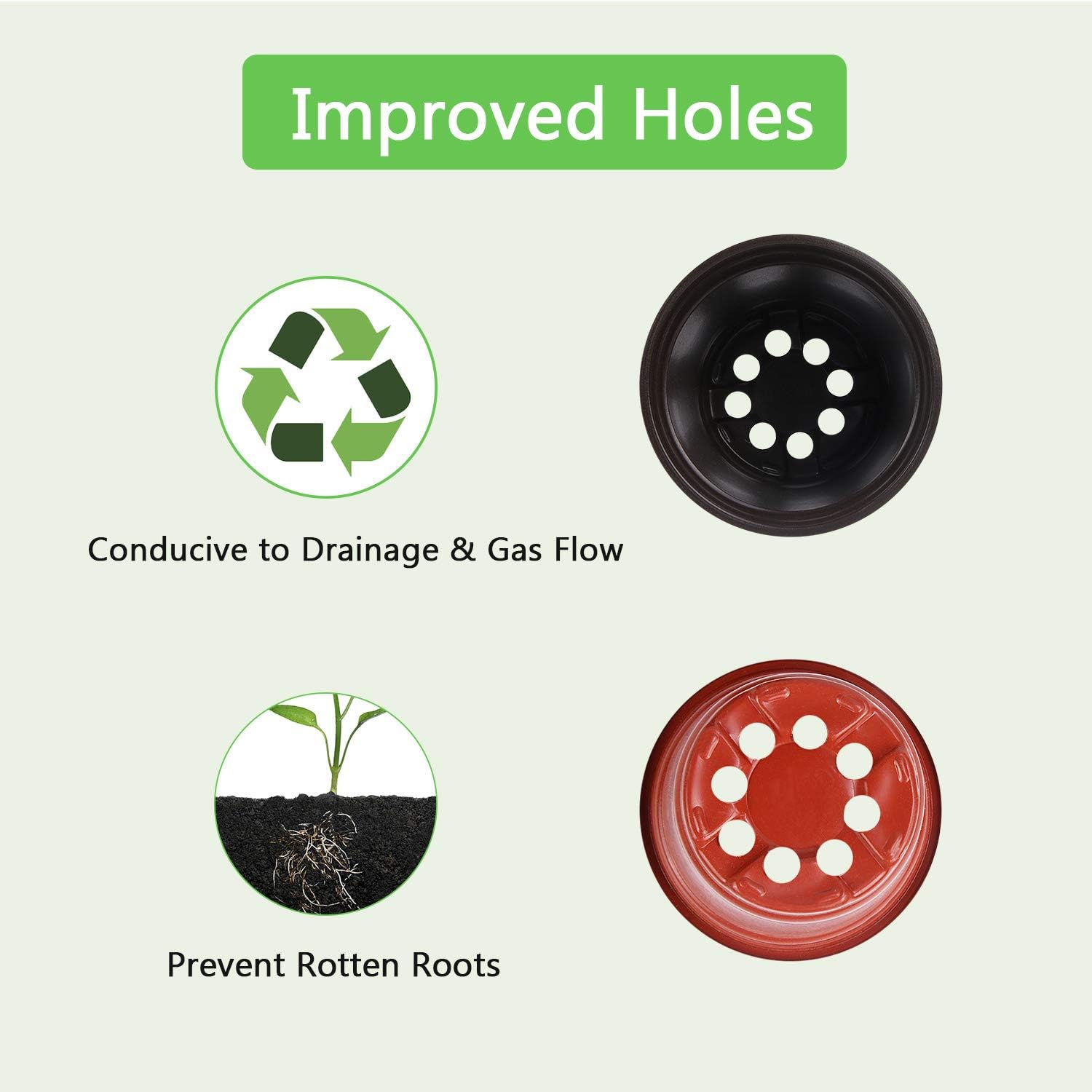 - Features drainage holes at bottom to prevent overwatering and improve ventilation