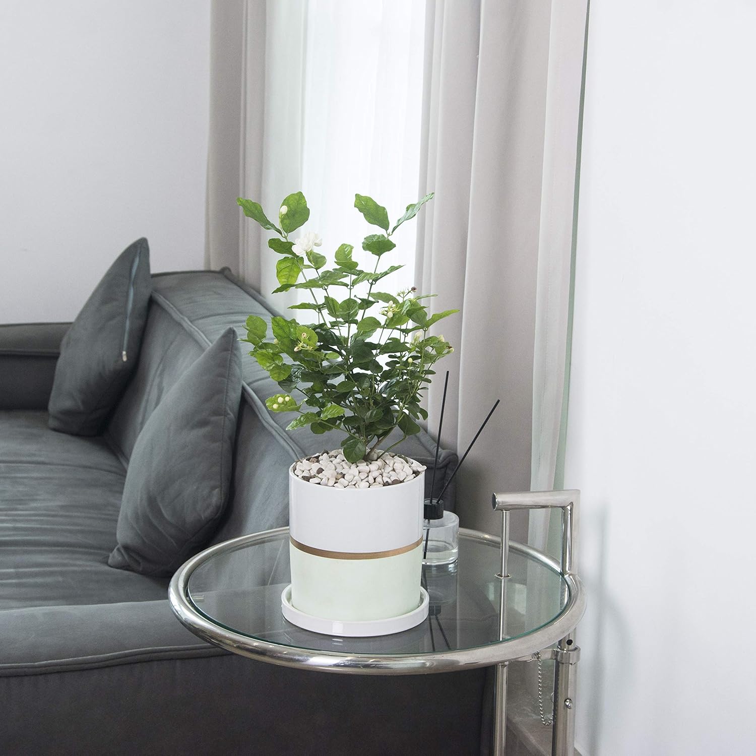 - 【Drain Hole & Saucer Tray】 Comes with a drain hole at the bottom, which can prevents the plant pot from overwatering, promoting plants health, and help them thrive. Saucer base for catching excess water without drips, works well for keep table clean