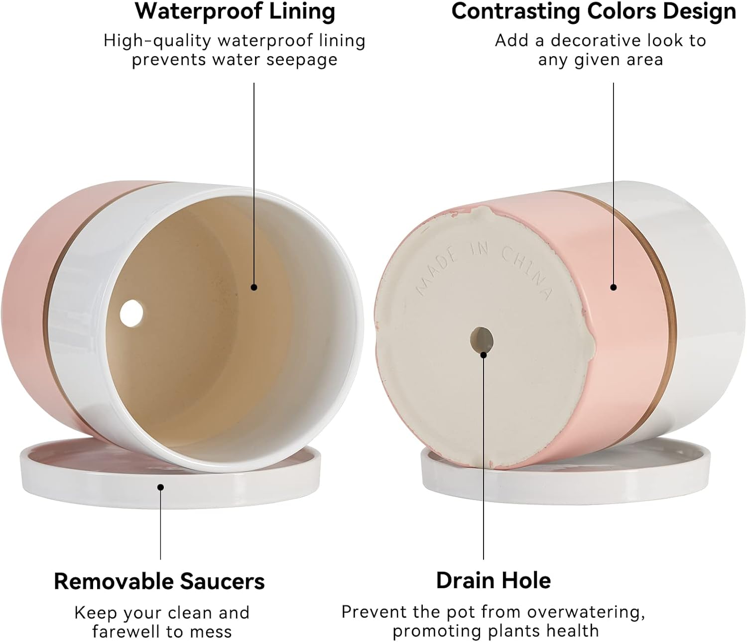 - 【Premium Ceramic Material】 Ekirlin plant pots are stoneware baked at high temperatures, so they can withstand extreme temperatures. Manufactured through appropriate synergy between traditional manual techniques and ergonomics, from the top to the bottom, these flower pots show elegant and natural lines