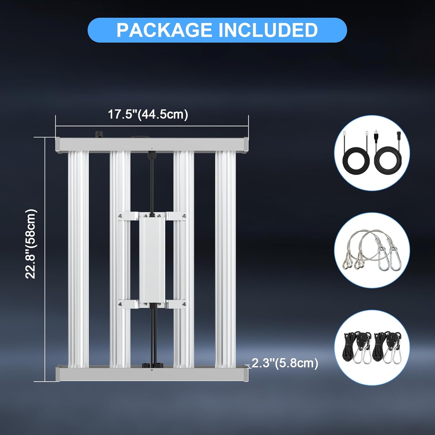 - DIMMABLE FULL SPECTRUM DESIGN- The intensity of light can be adjusted according to the needs of plants. Used with led new technology SMD leds, It contains 3000K(736PCS)+6500K(192PCS)+660nm(160PCS)+740nm(32PCS)+UV(32PCS) LEDs . Product Size- 23*17*2.3inches (58*44*6cm).