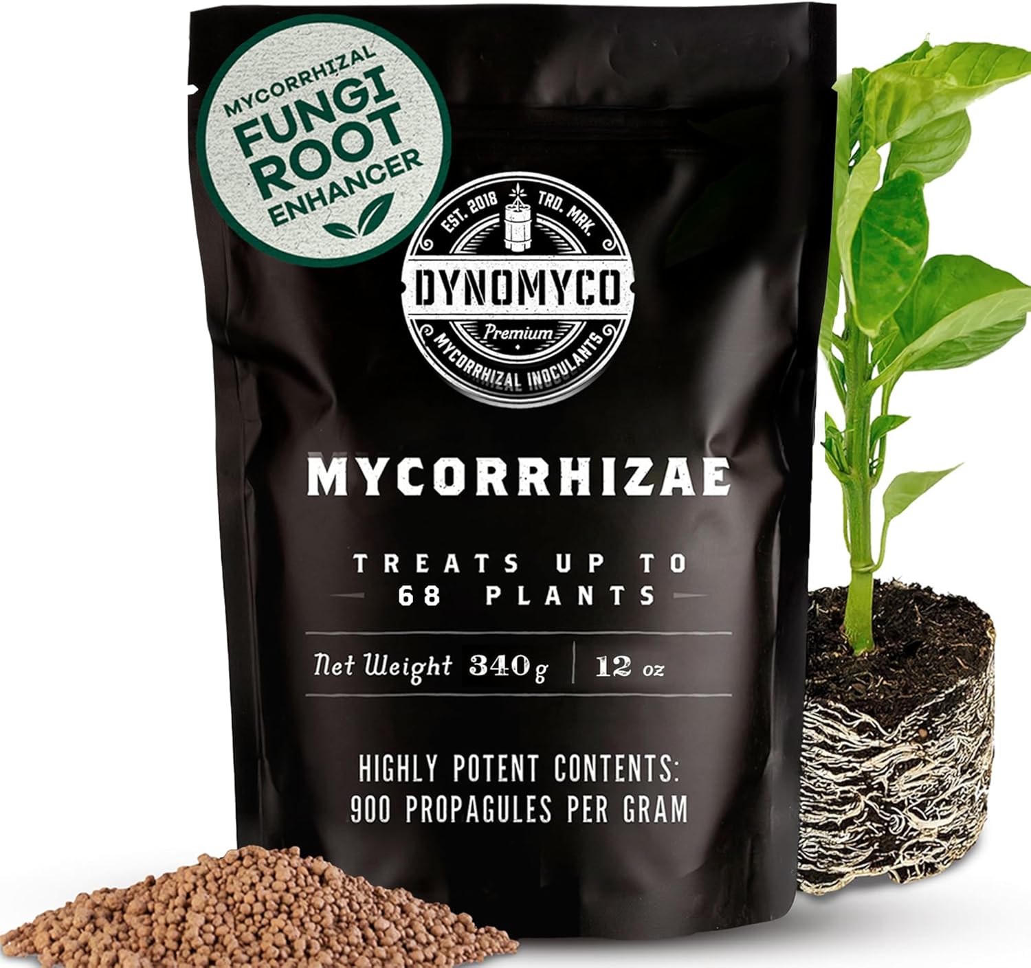 DYNOMYCO Granular Mycorrhizal Fungi Inoculant, 340g / 12oz – Boosts Root Growth, Yields & Nutrient Uptake – 900 Propagules/g, Concentrated Granules, & OMRI Listed – Biofertilizer for Plant Growth